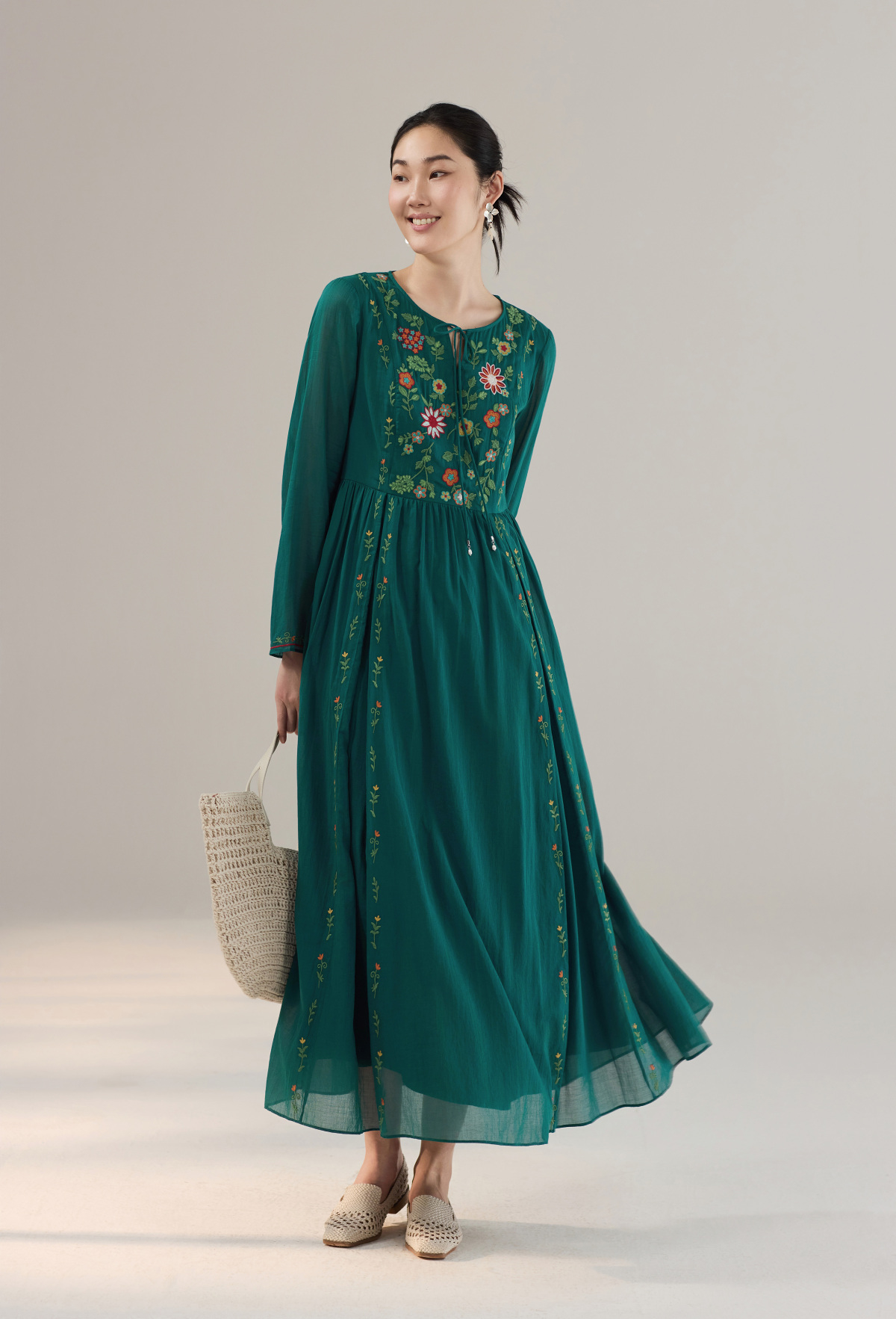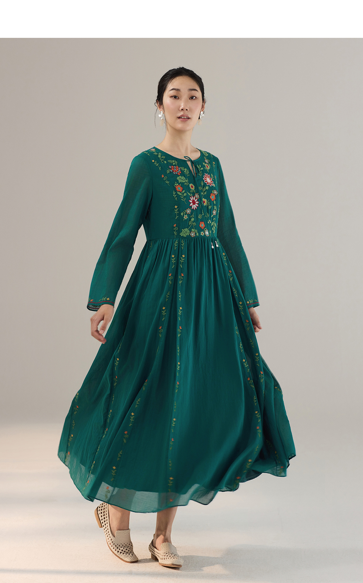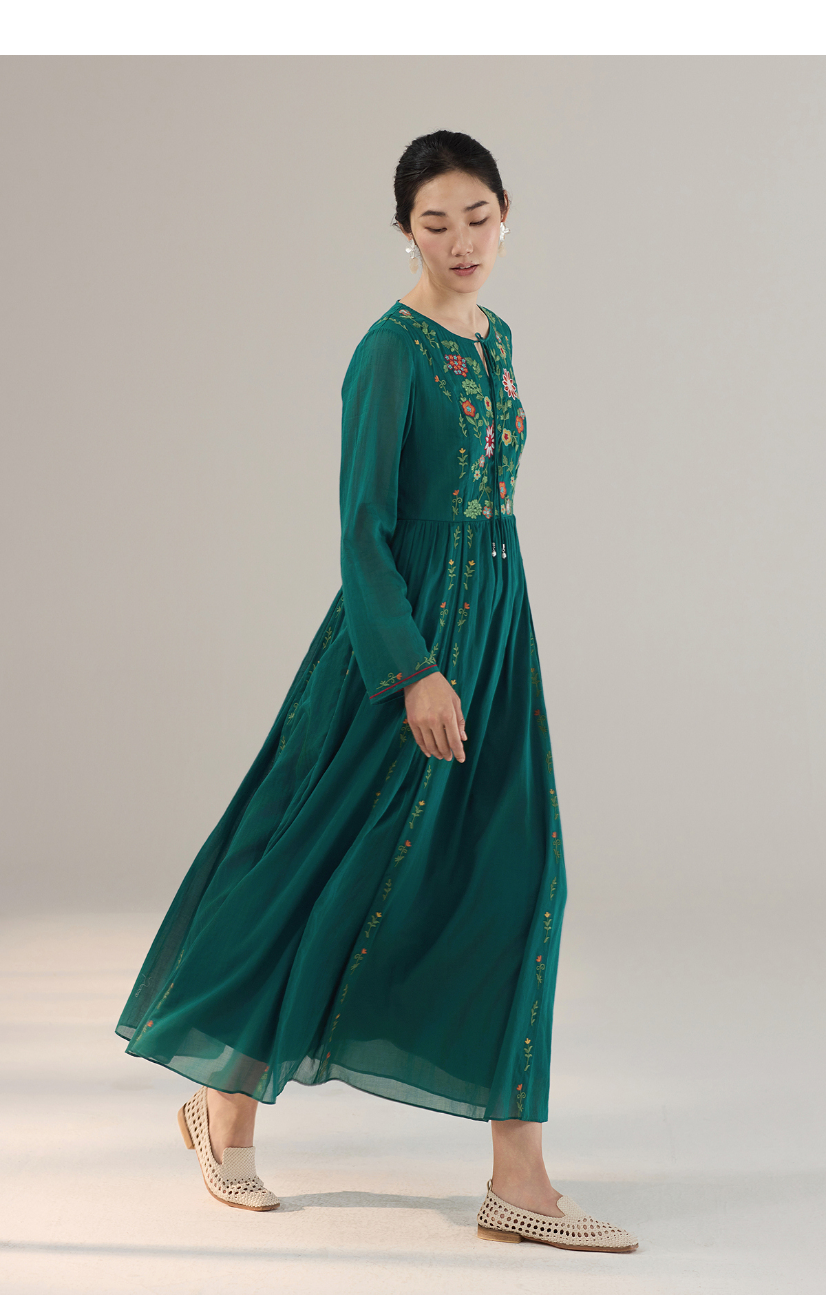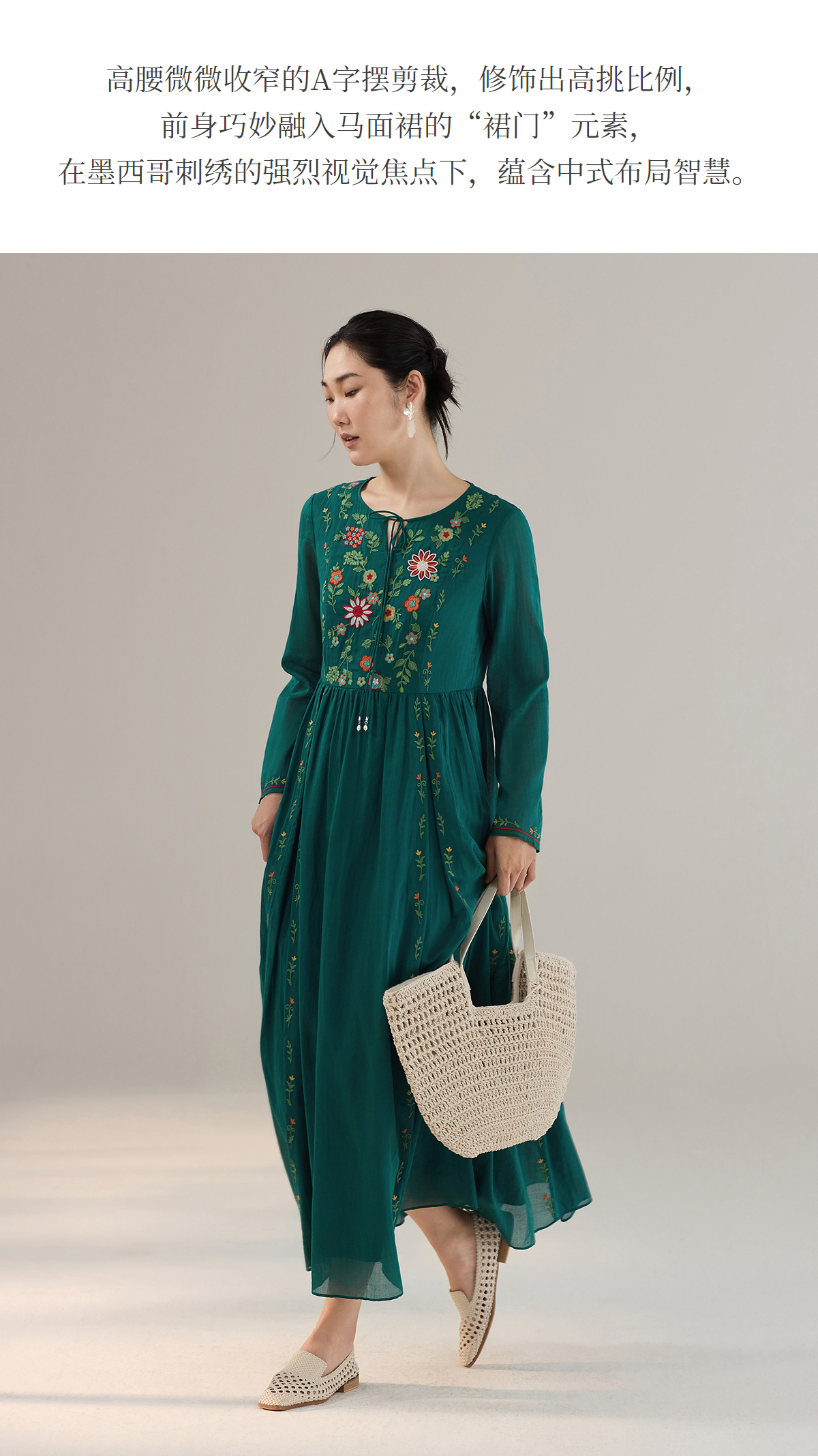 【林栖设计小店】婴儿棉连衣裙墨西哥绣花优雅气质宽松2025秋冬新款长裙女T1954113