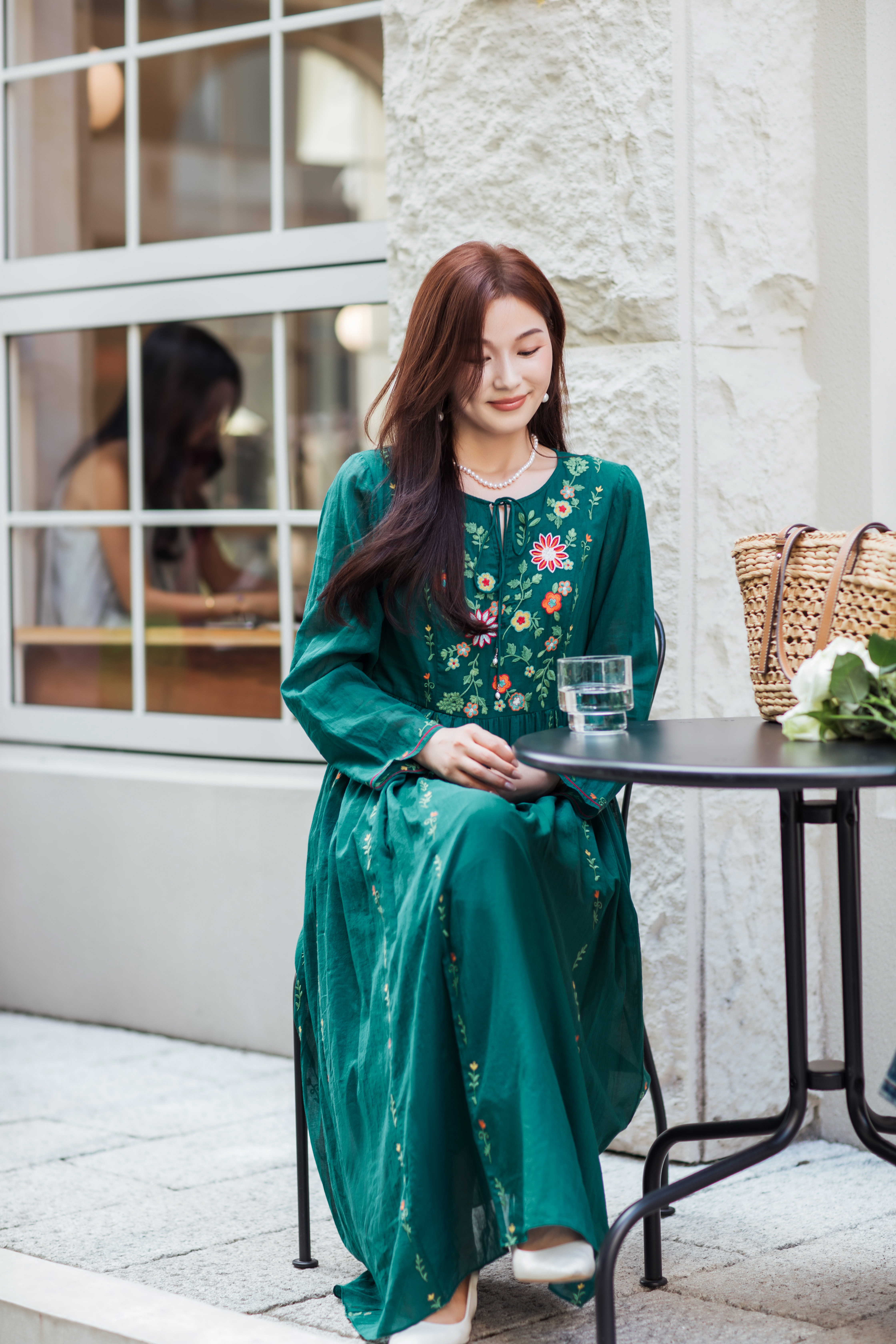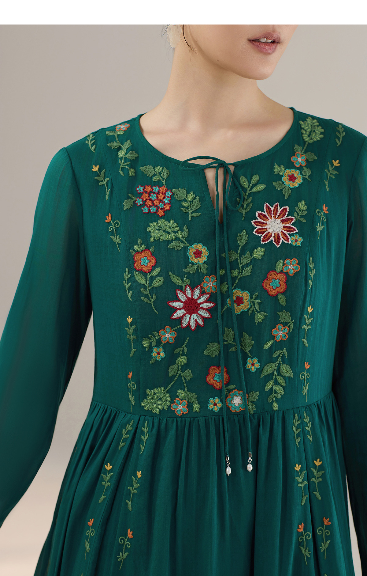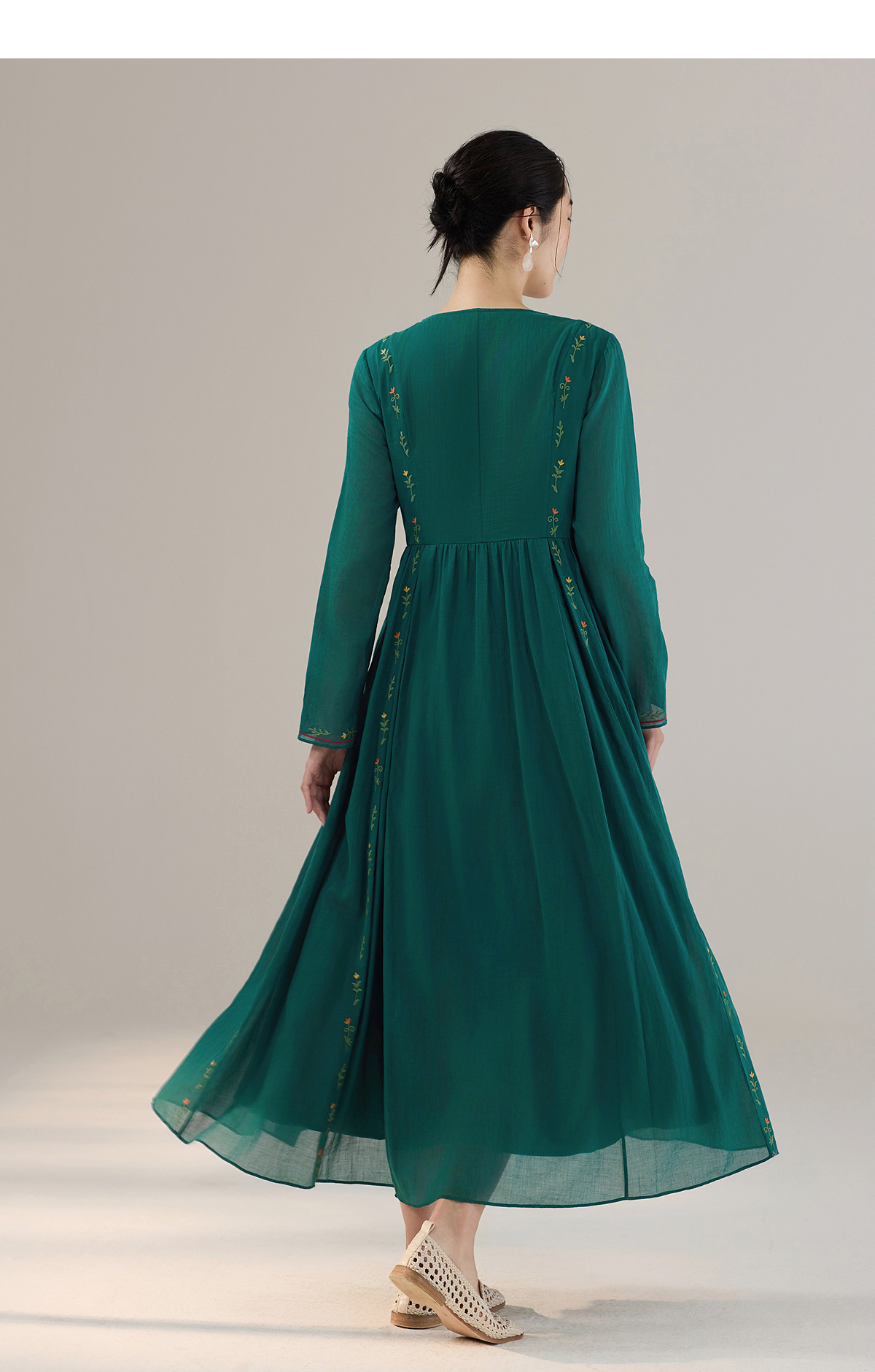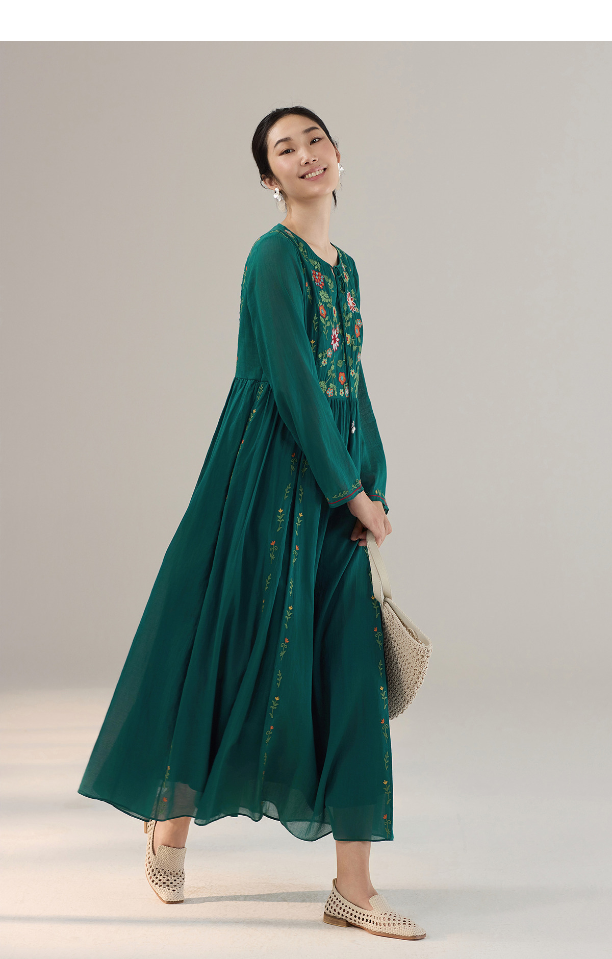 【林栖设计小店】婴儿棉连衣裙墨西哥绣花优雅气质宽松2025秋冬新款长裙女T1954113