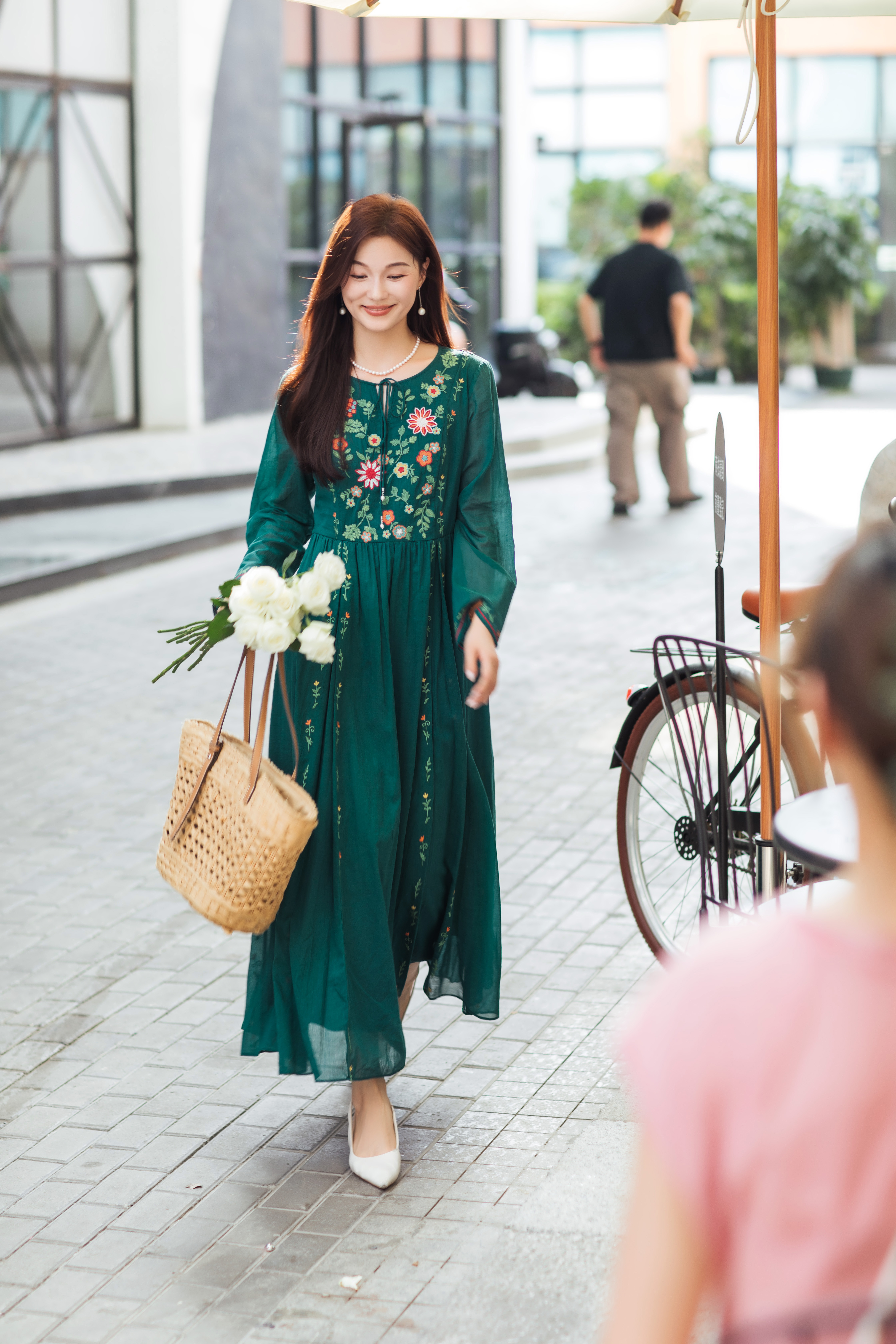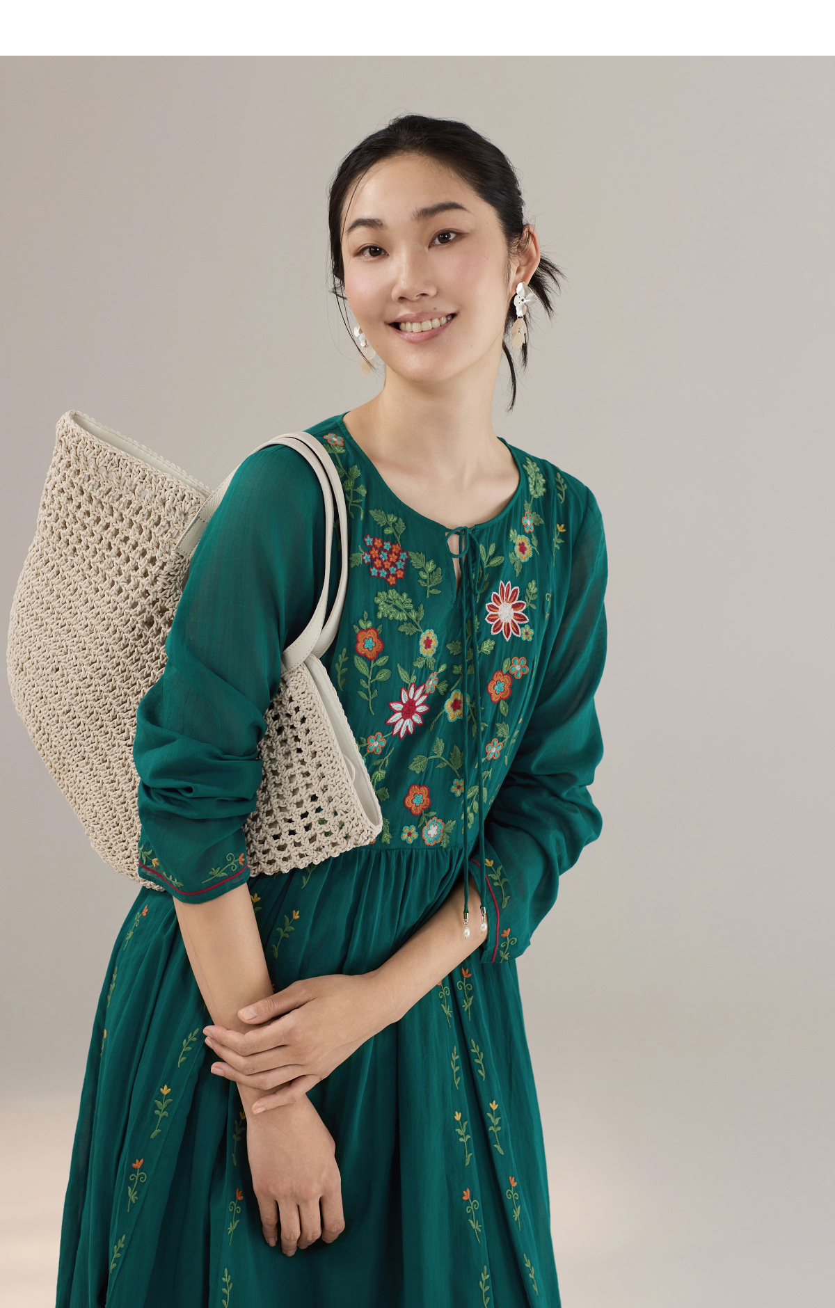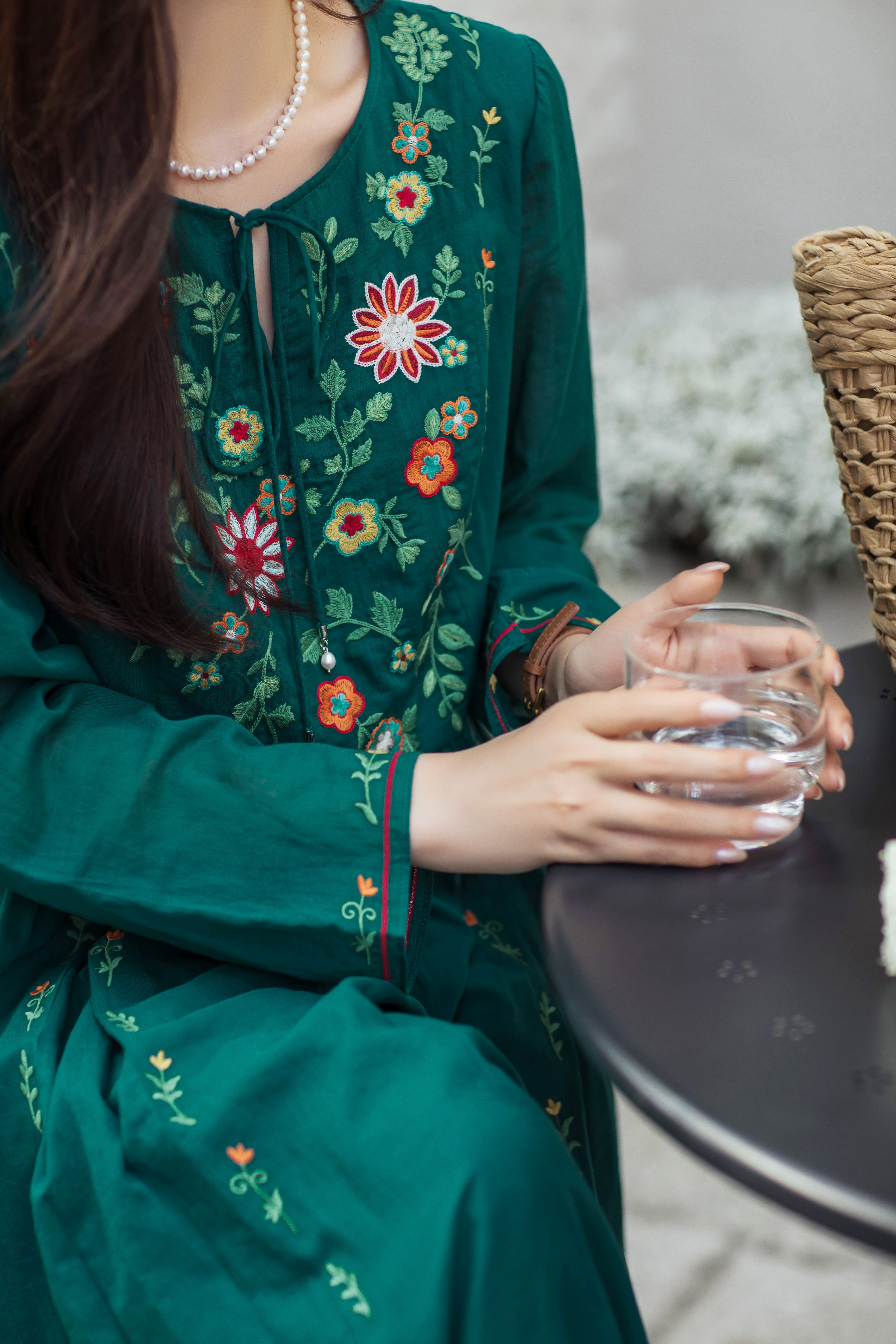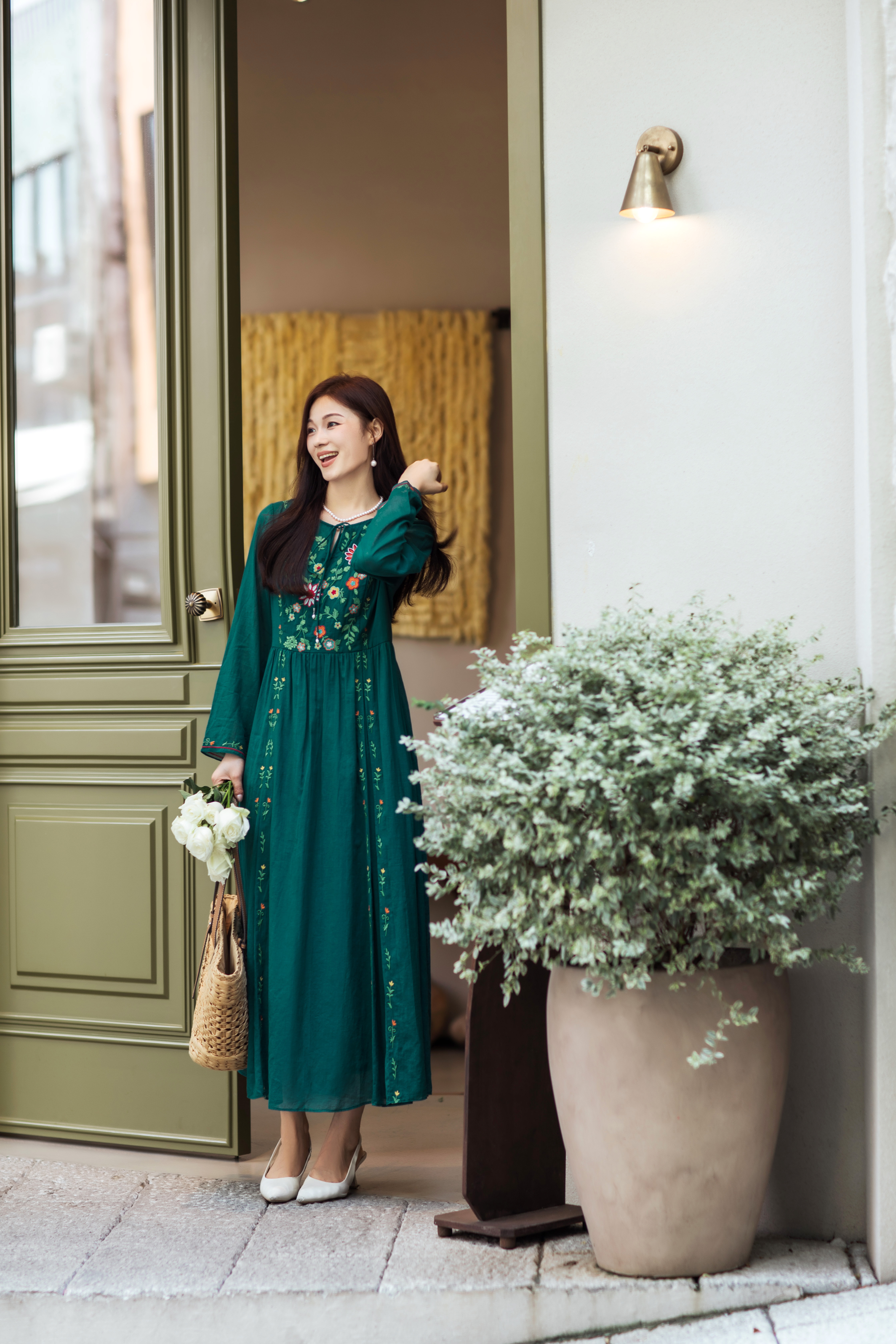 【林栖设计小店】婴儿棉连衣裙墨西哥绣花优雅气质宽松2025秋冬新款长裙女T1954113