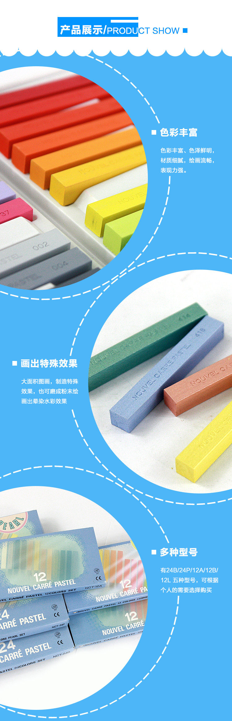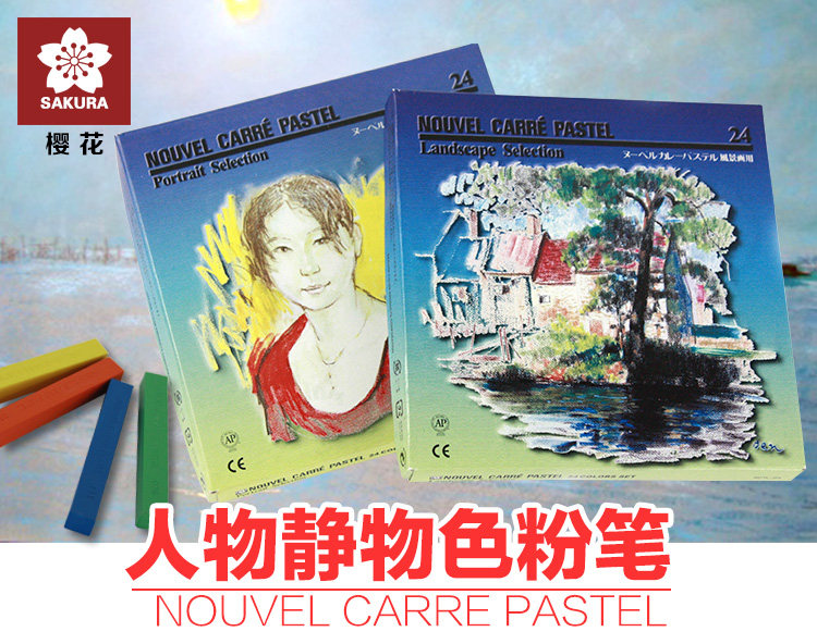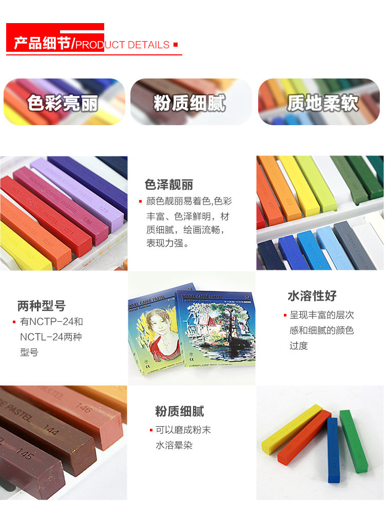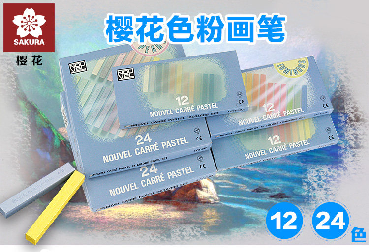 日本进口樱花色粉笔 色粉棒 粉彩棒色粉笔48色 24色A套深色系