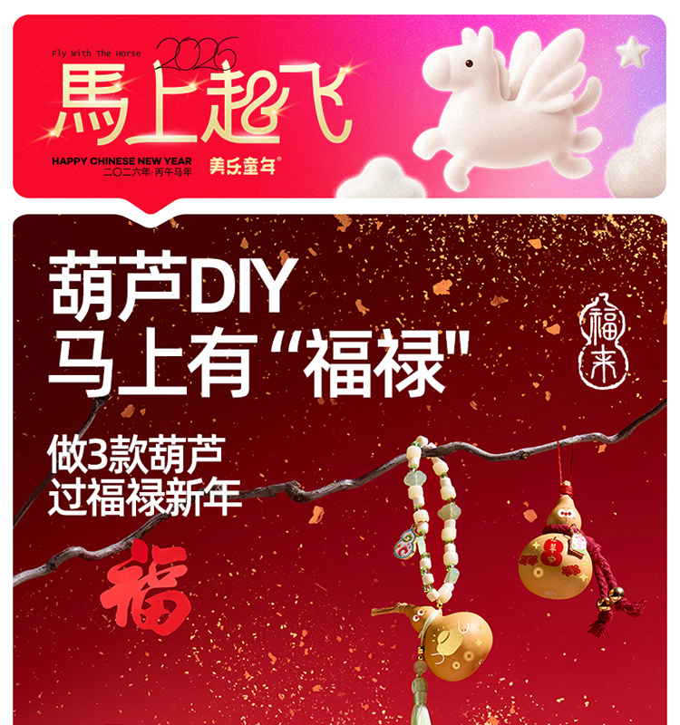 美乐童年儿童手工非遗葫芦diy材料马年春节玩具男女孩过新年礼物