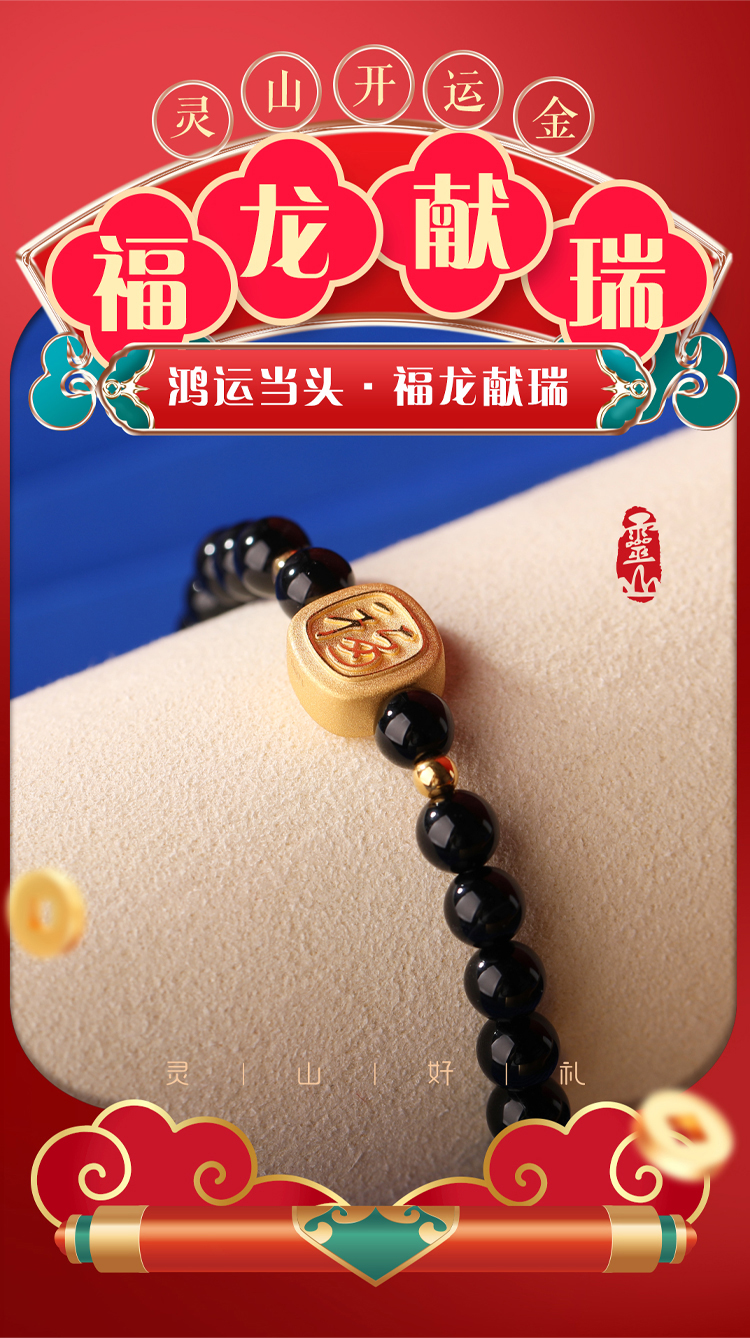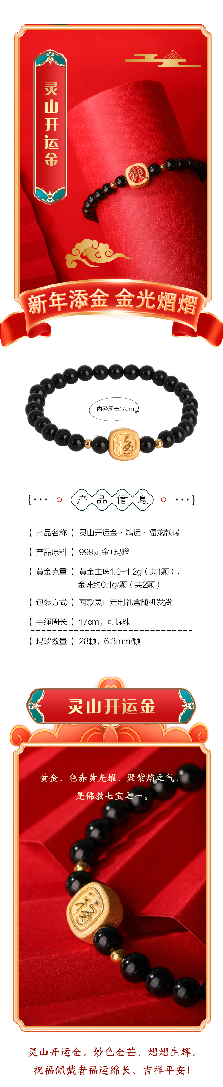 灵山开运金·鸿运·福龙献瑞黄金手绳