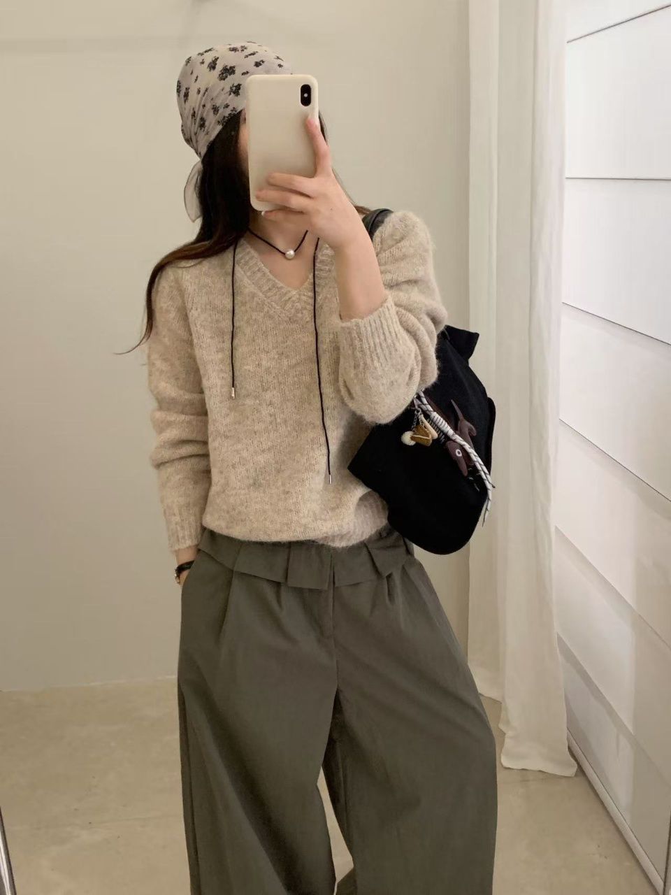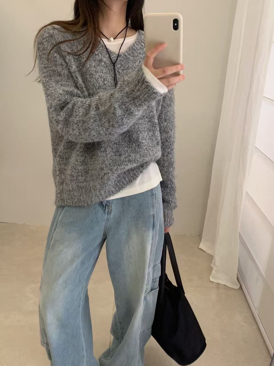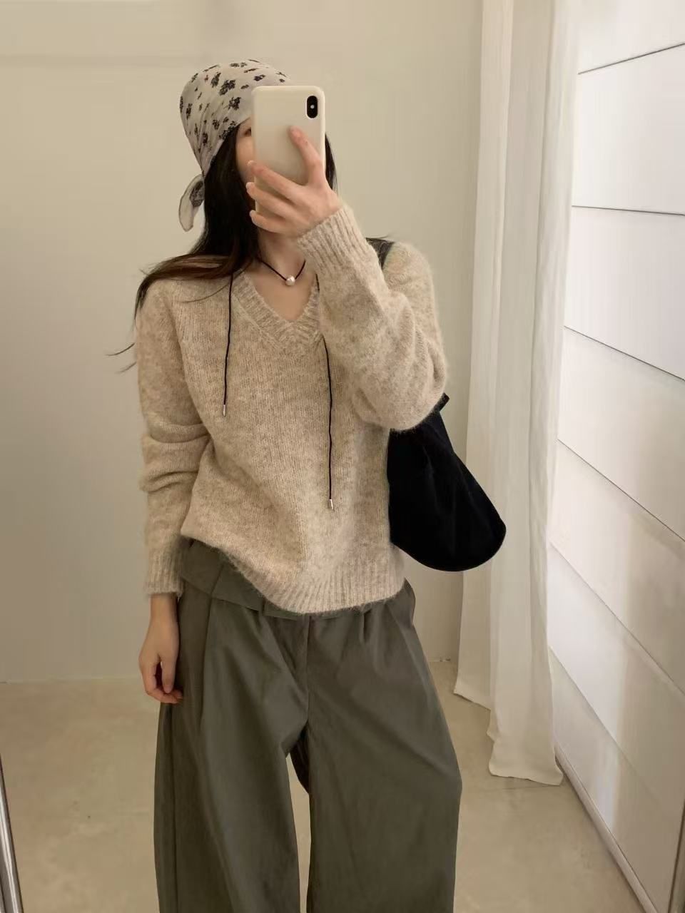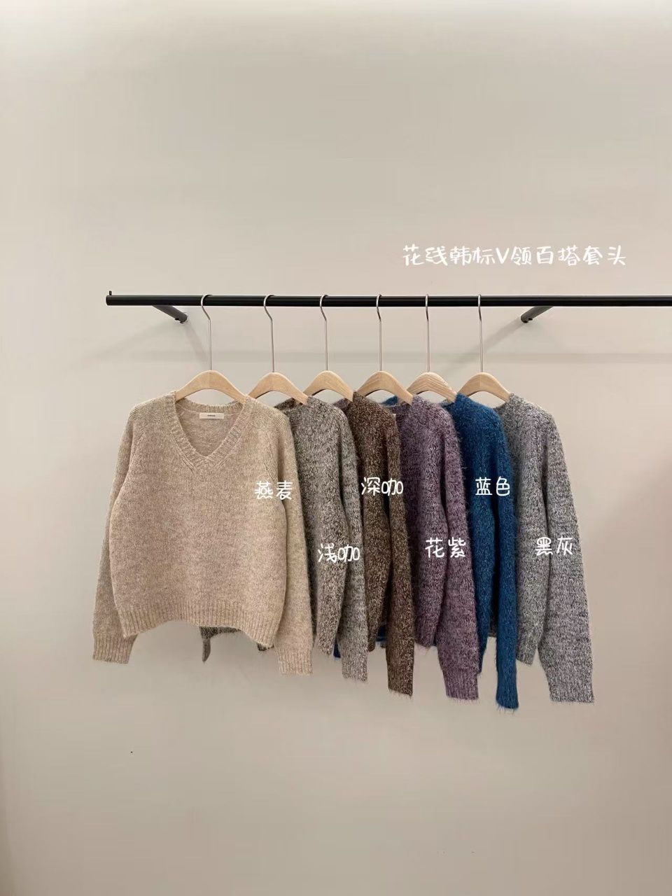 【YW】无忧购时尚慵懒风韩系软糯小衫v领长袖毛衣针织衫女9109#(截单后3-5天发货)
