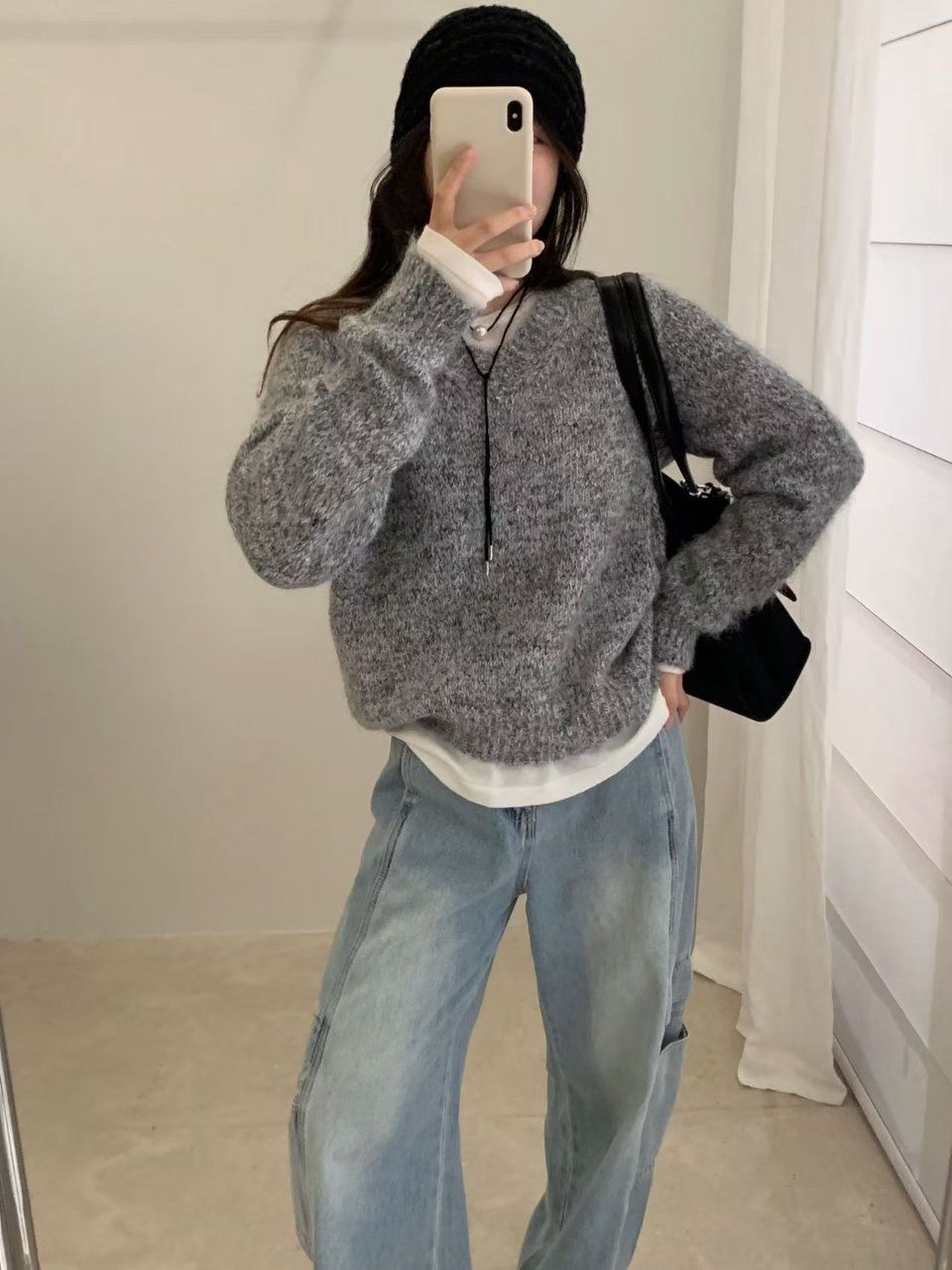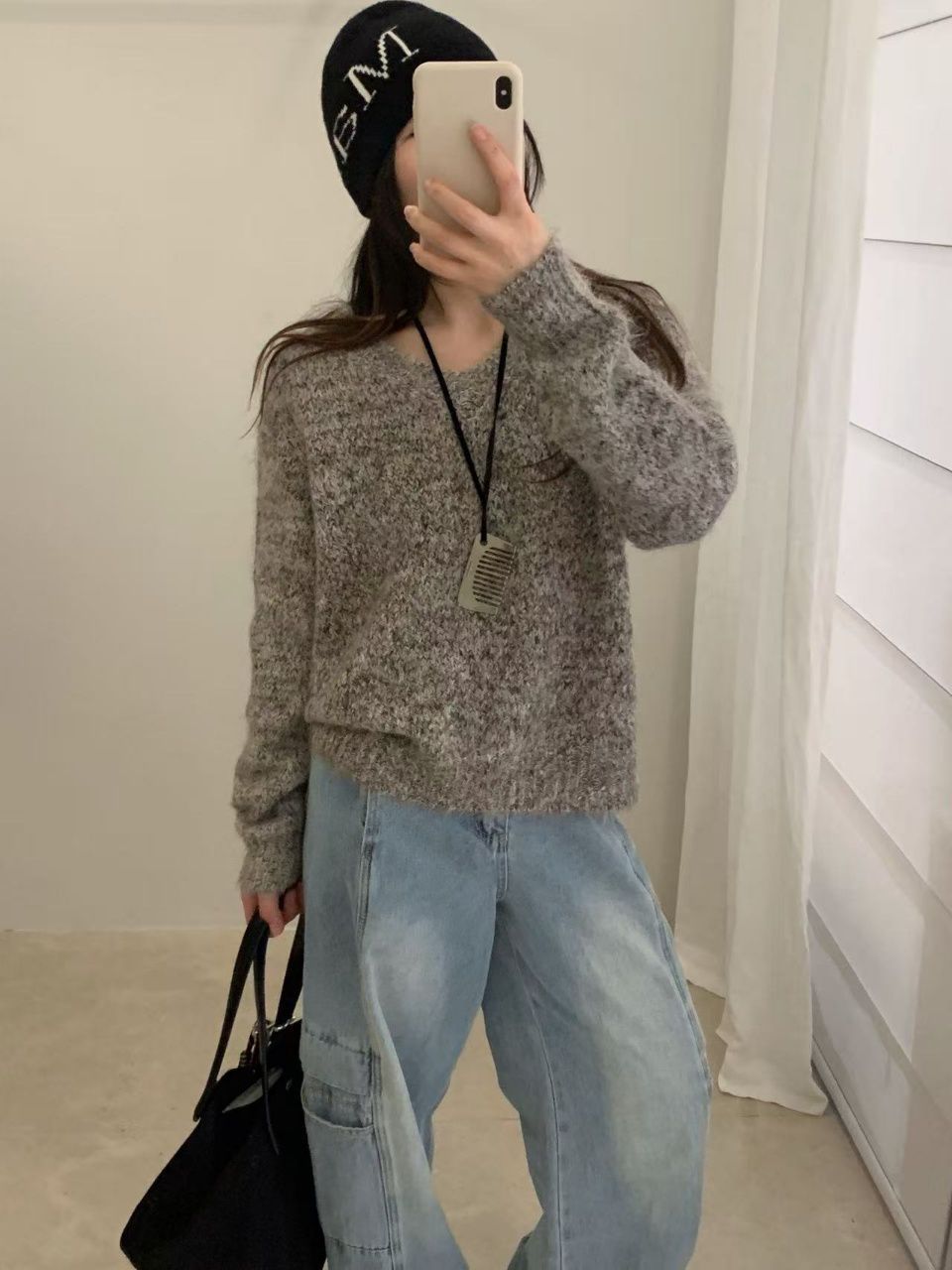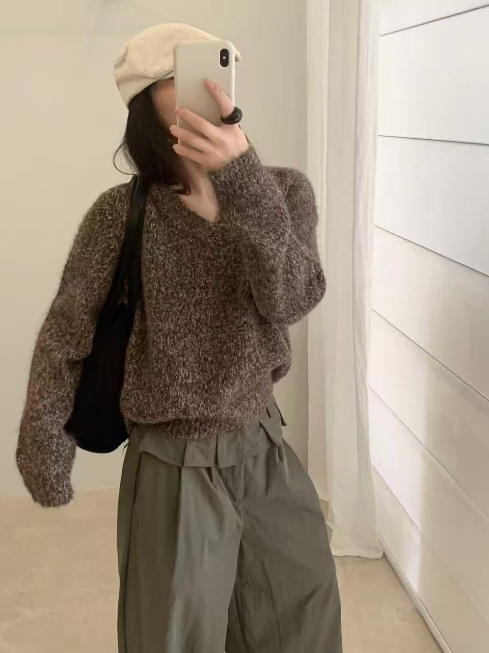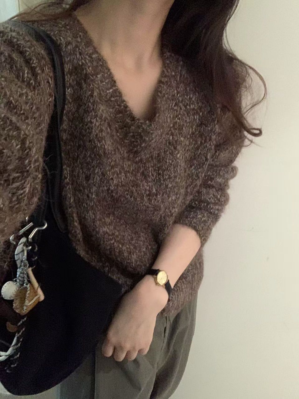 【YW】无忧购时尚慵懒风韩系软糯小衫v领长袖毛衣针织衫女9109#(截单后3-5天发货)