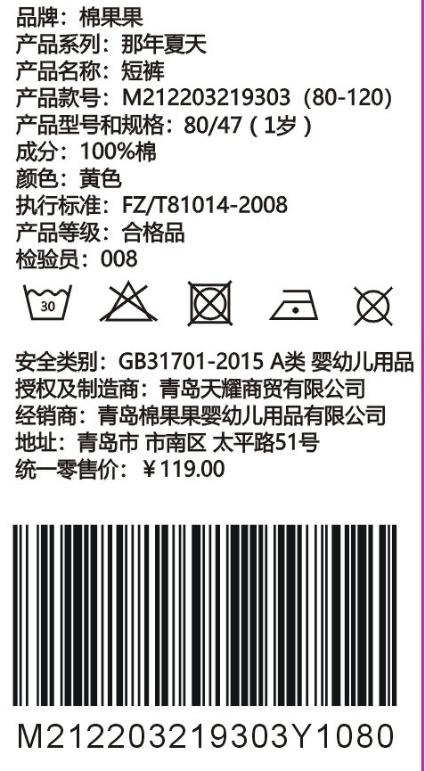 棉果果夏季男童纯棉中裤短裤M212203219303