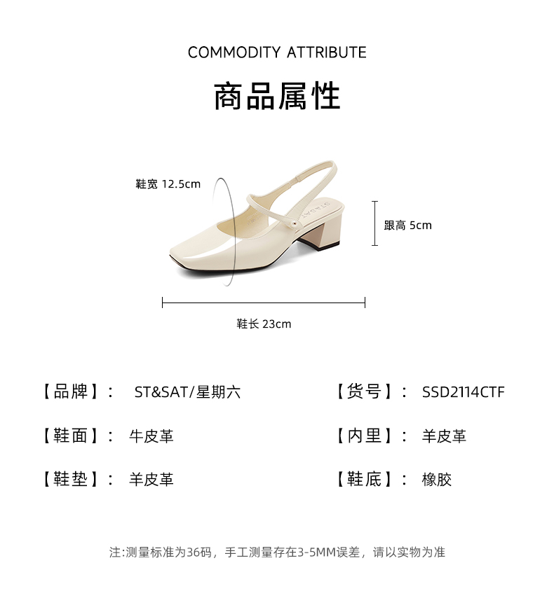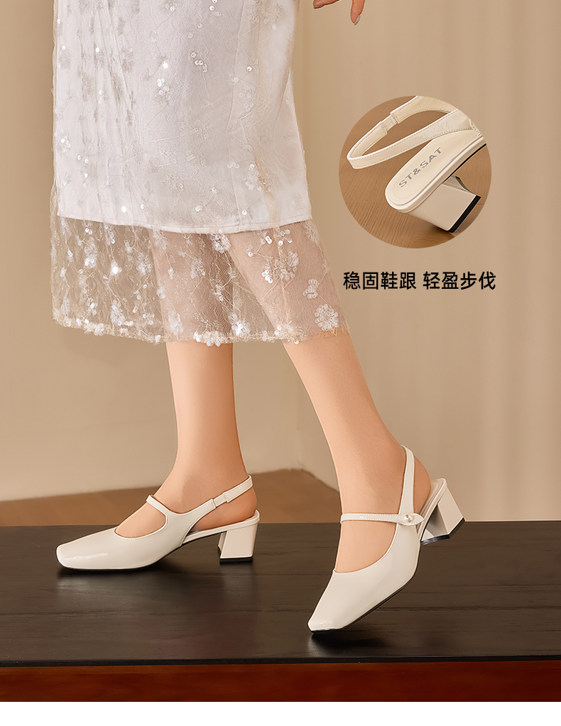 星期六法式优雅方头后空凉鞋SSD2114CTF