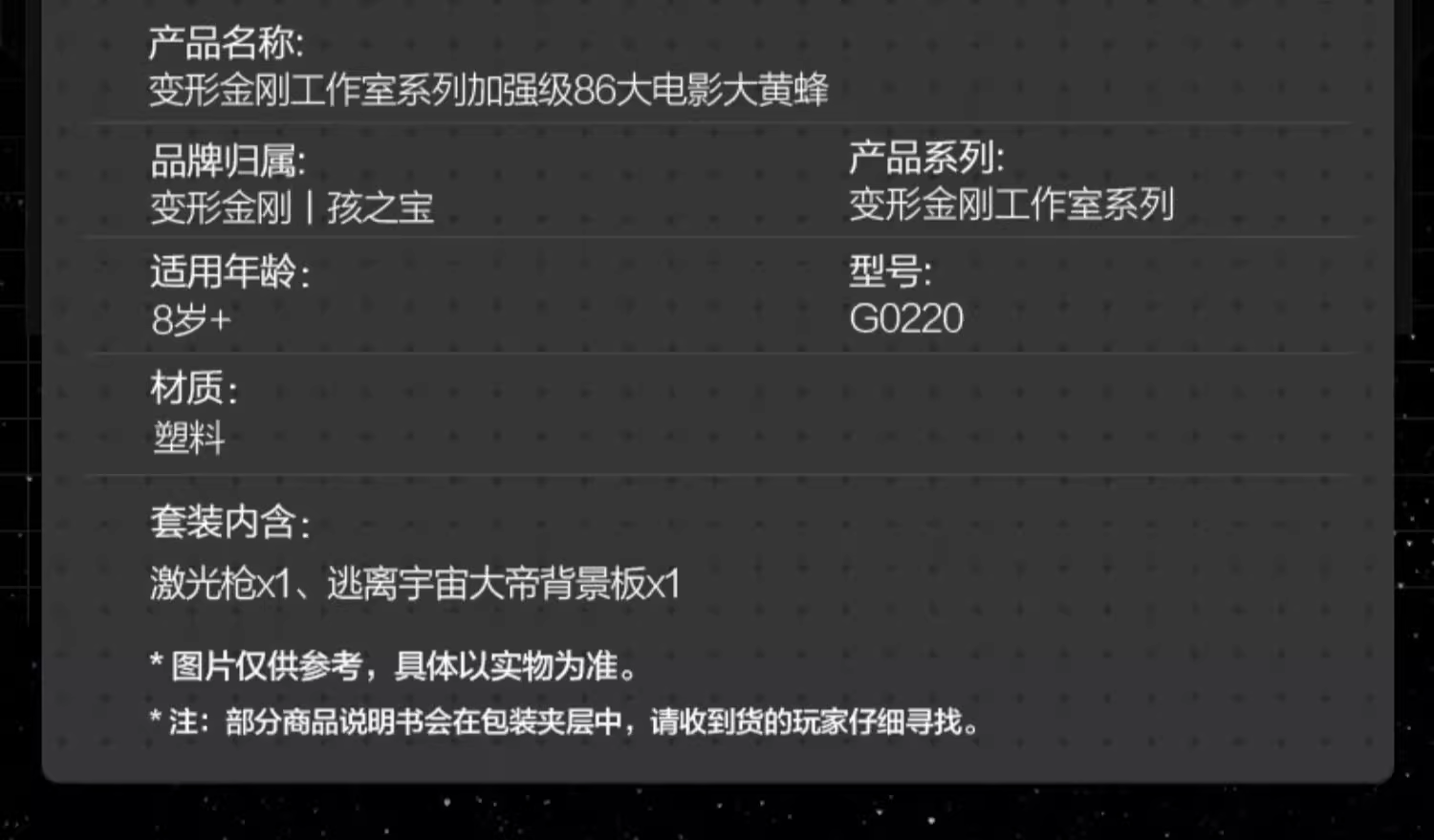 孩之宝Hasbro 变形金刚工作室系列加强级86大电影大黄蜂HASCG0220XC00