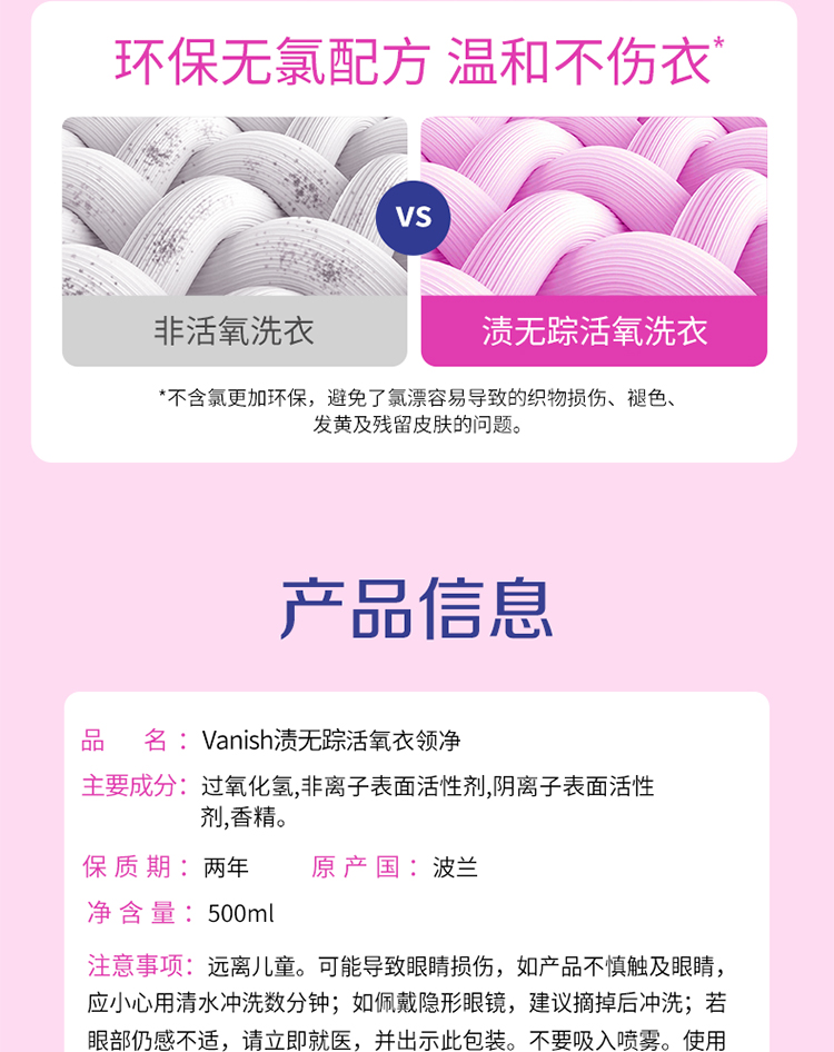【渍无踪】活氧漂白剂 衣领净强力去黄去渍白衣服500ml