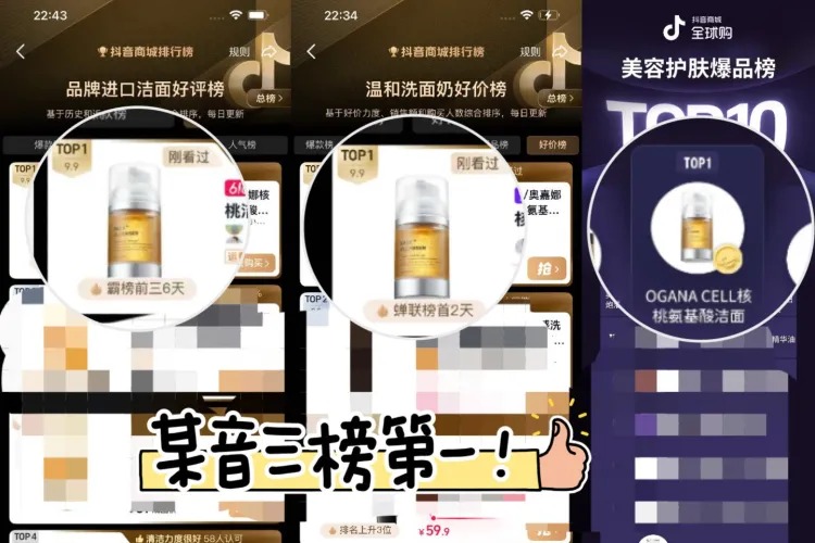 随着yi美护肤从“小众奢享”走向“大众日常”,韩国奥嘉娜的明星单品“核桃洁面“上线即斩获某音三榜第一、一举突破全网百万销售额!