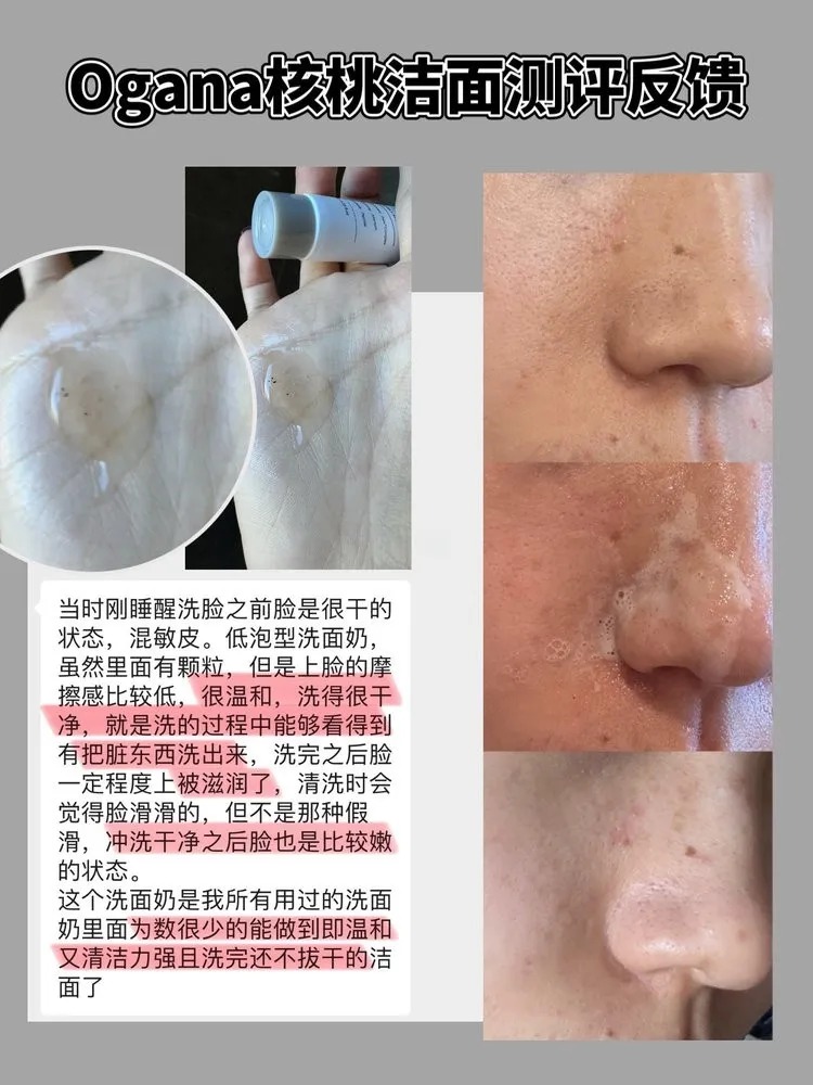 “黑头真的少了”、“敏肌换季用不泛红”、“洗后水润不紧绷”......
