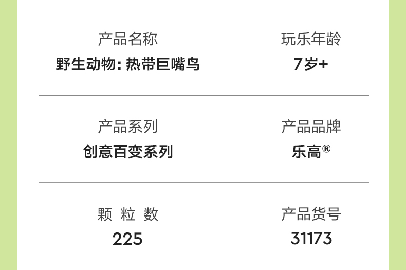 乐高LEGO 野生动物:热带巨嘴鸟LEGC31173