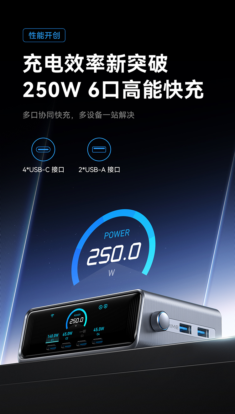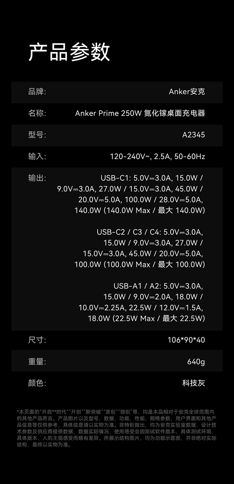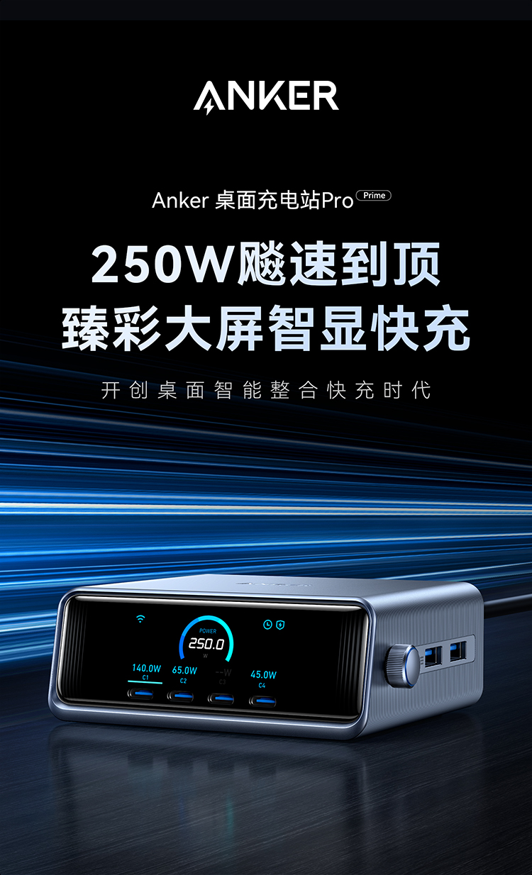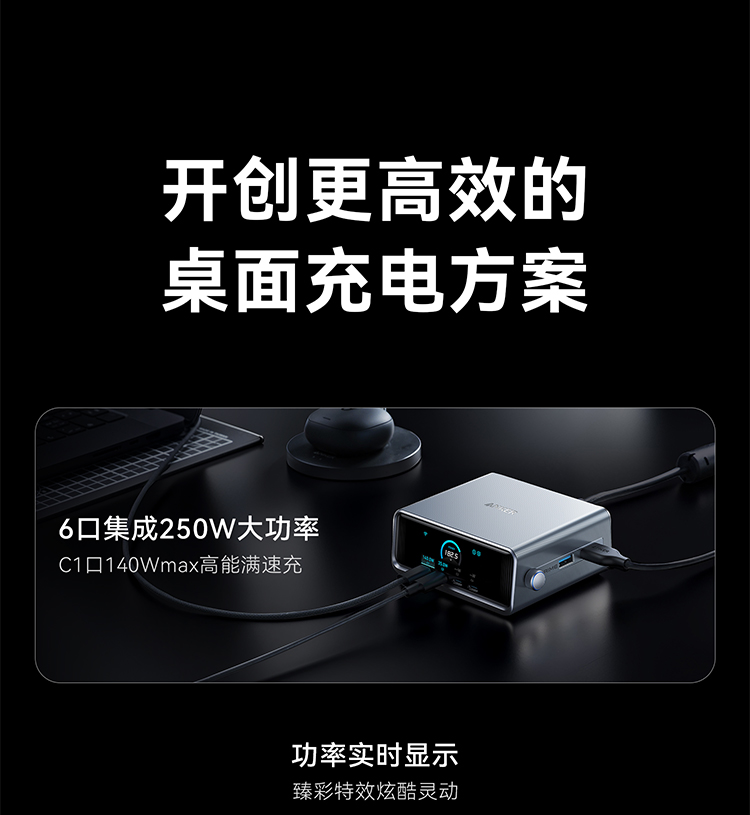 【新品】Anker安克Prime250W6口桌面充电器氮化镓快充4C2A多口桌充 A2345641