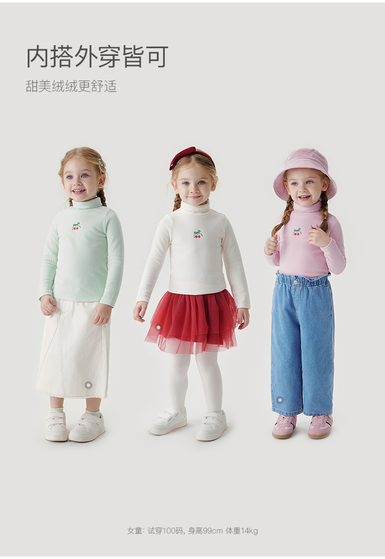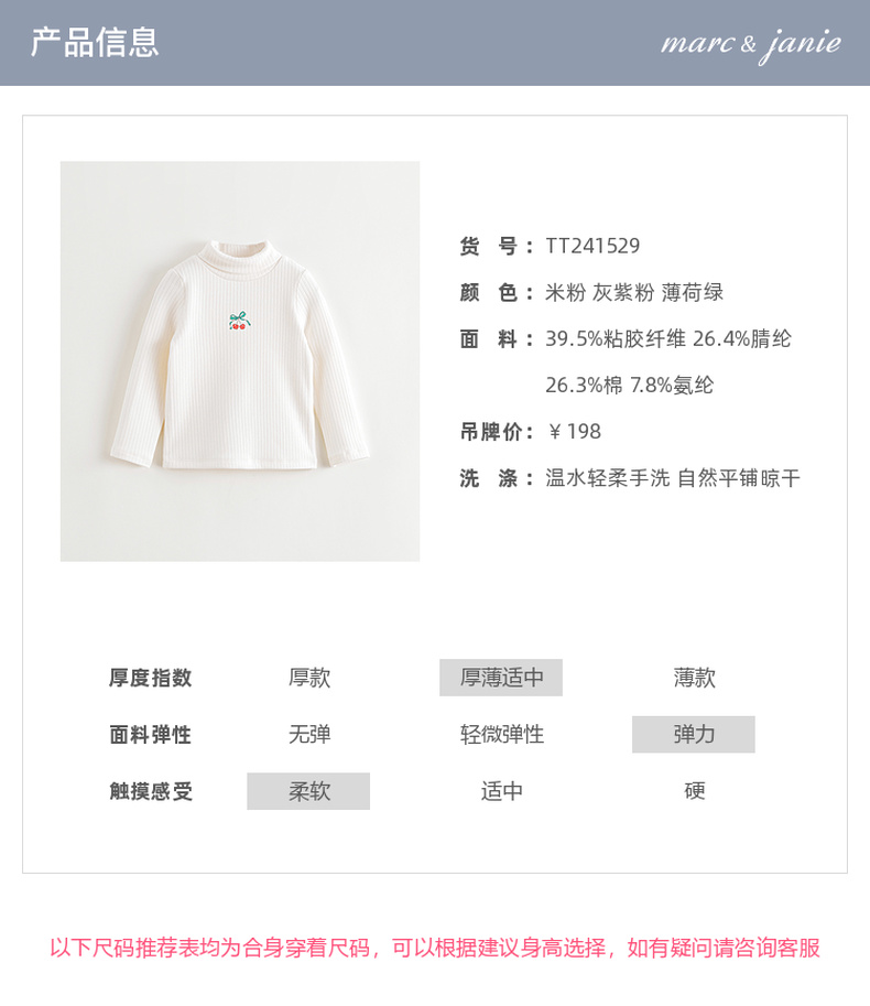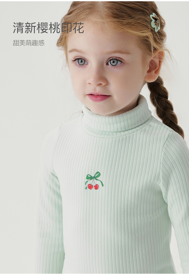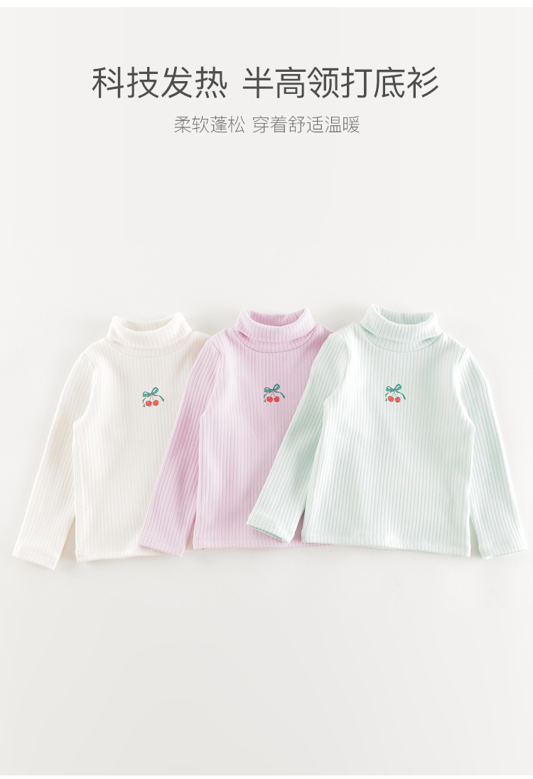 [科技发热]马克珍妮女童绣花半高领打底衫儿童T恤宝宝冬装241529