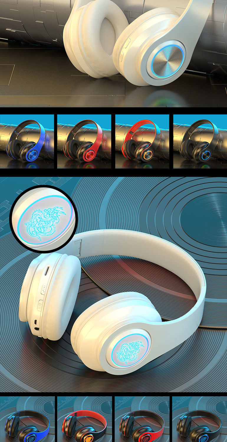 无线蓝牙耳机发光头戴式重低音耳机OPPO华为vivo苹果安卓通用耳麦