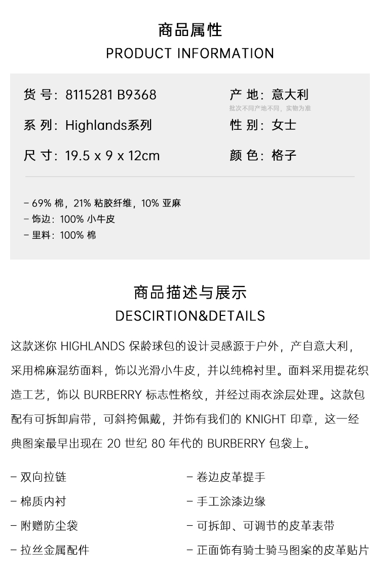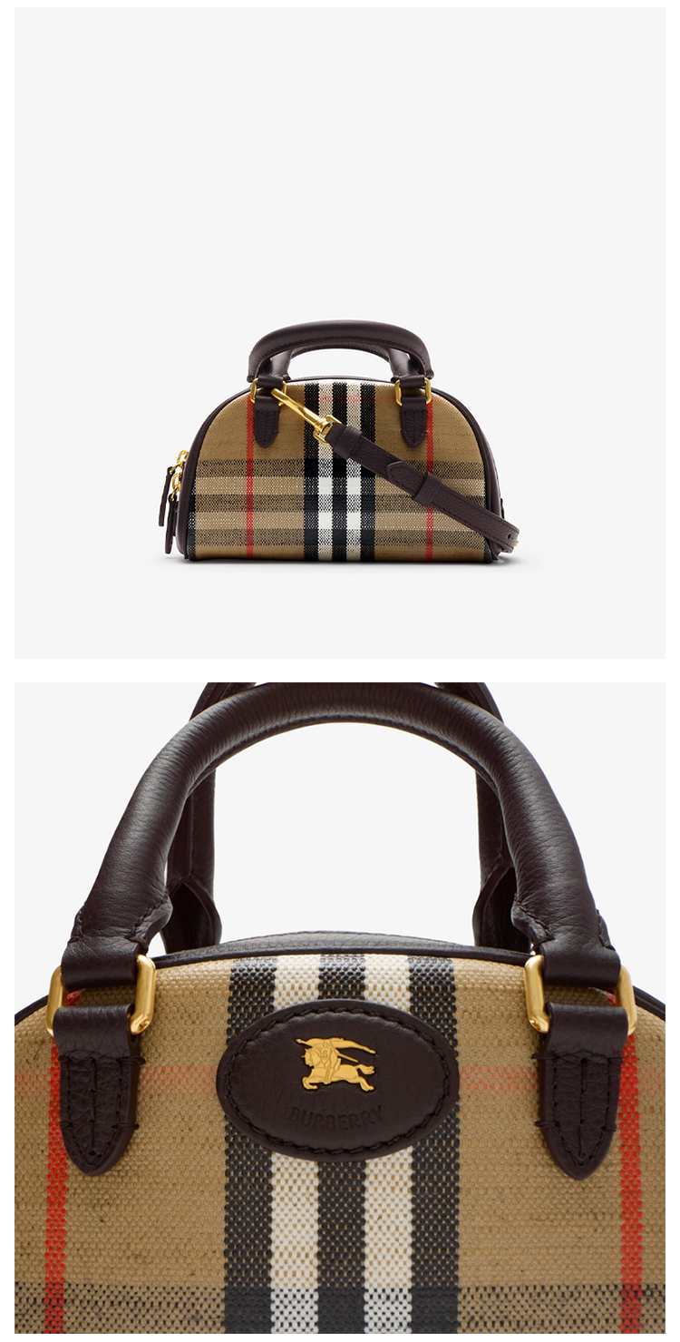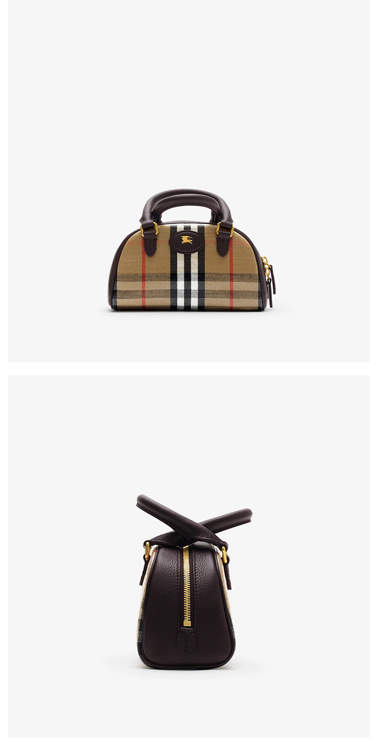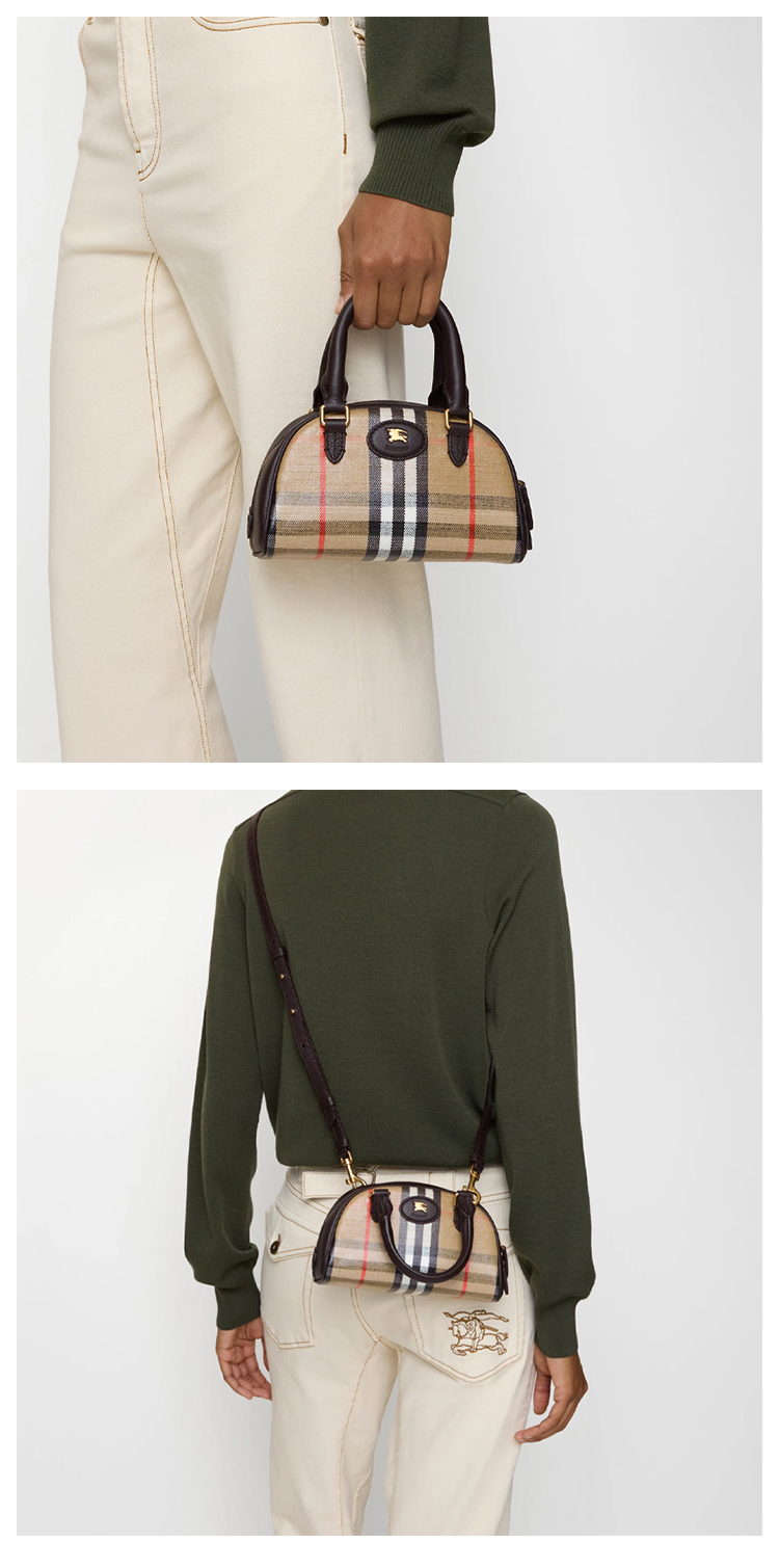 BURBERRY 巴宝莉 女士马术骑士徽标贴片迷你手提保龄球包 格子 8115281 B9368