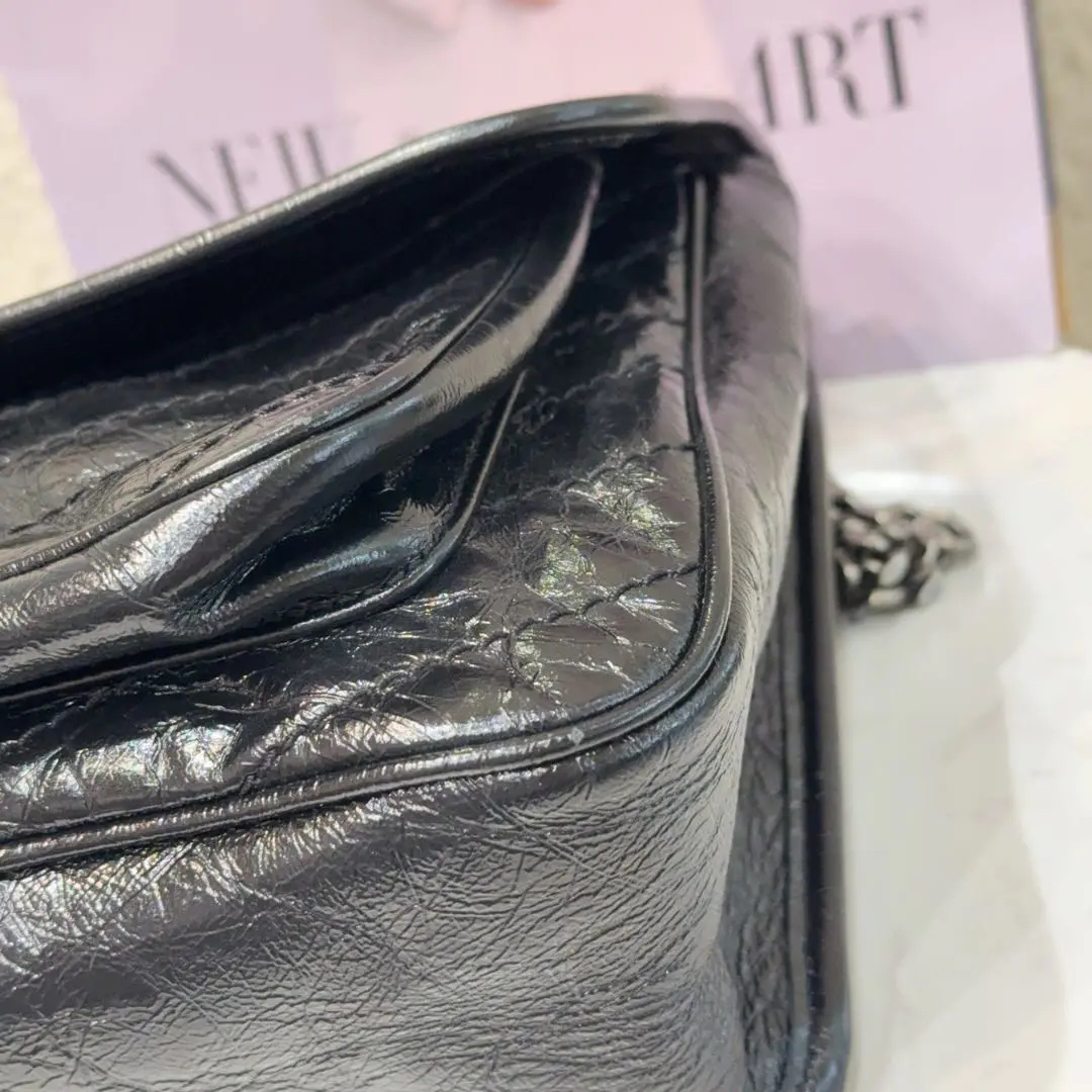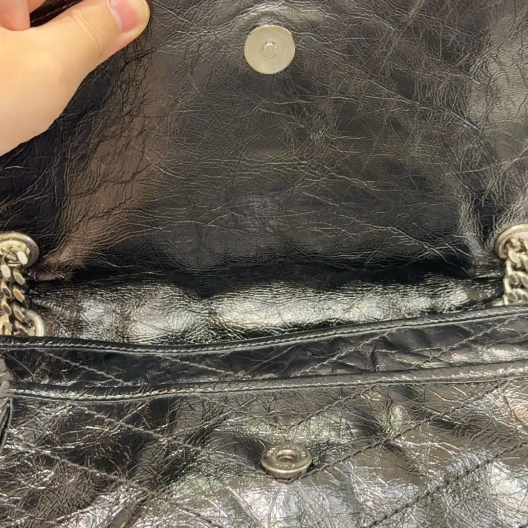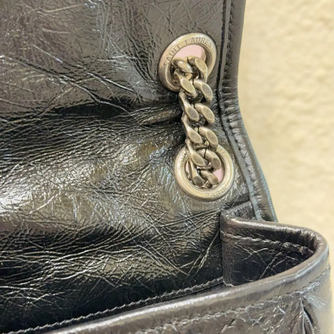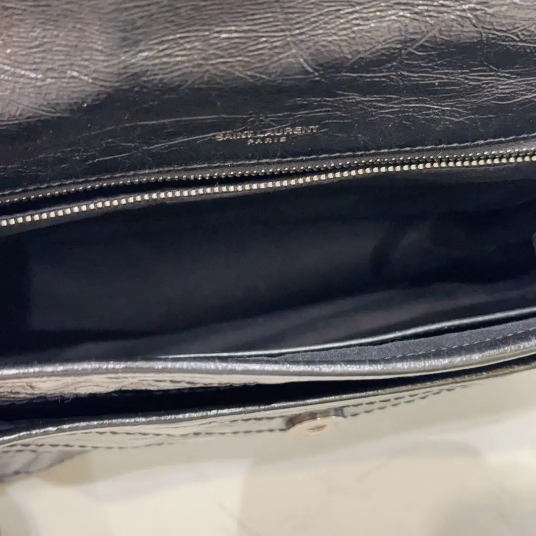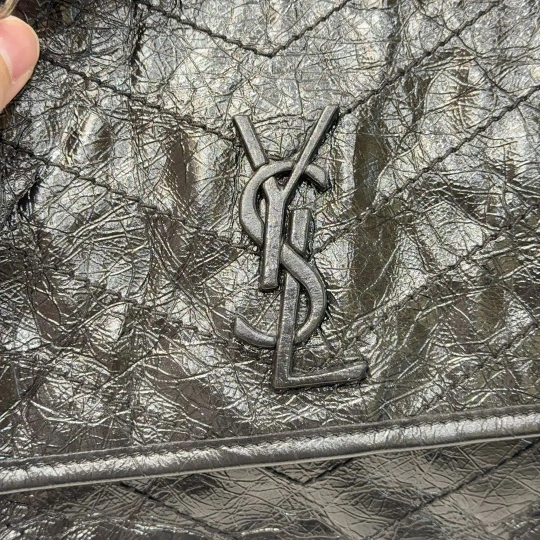 【商品详情】正品二手 YSL Niki Shopping Bag 中号 黑银 油蜡牛皮 斜挎包😏 98新 28*20。永远的经典