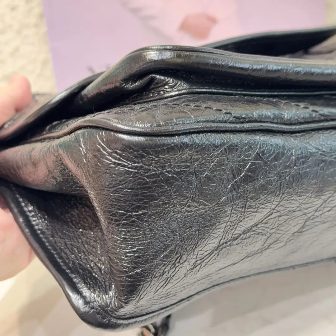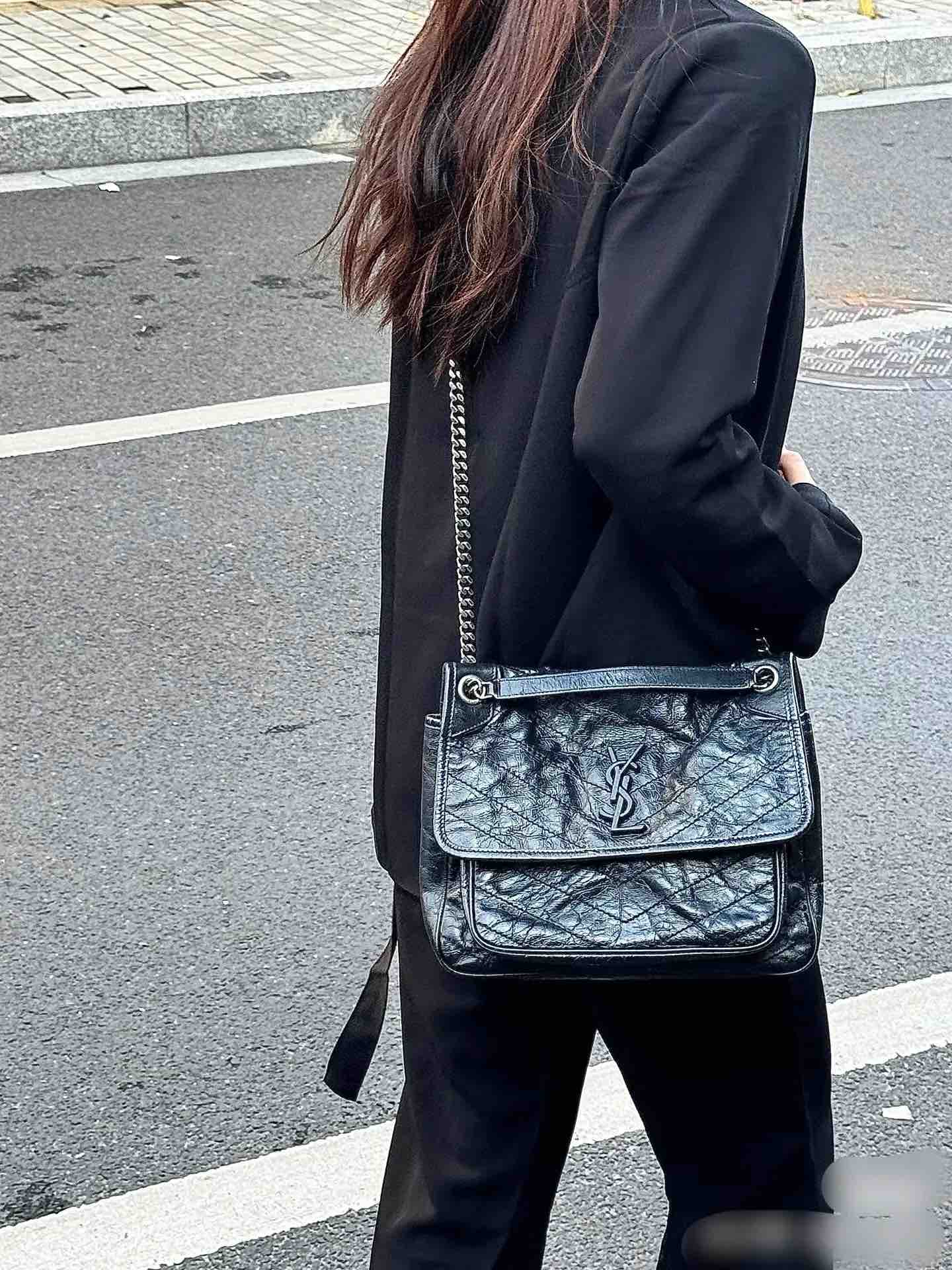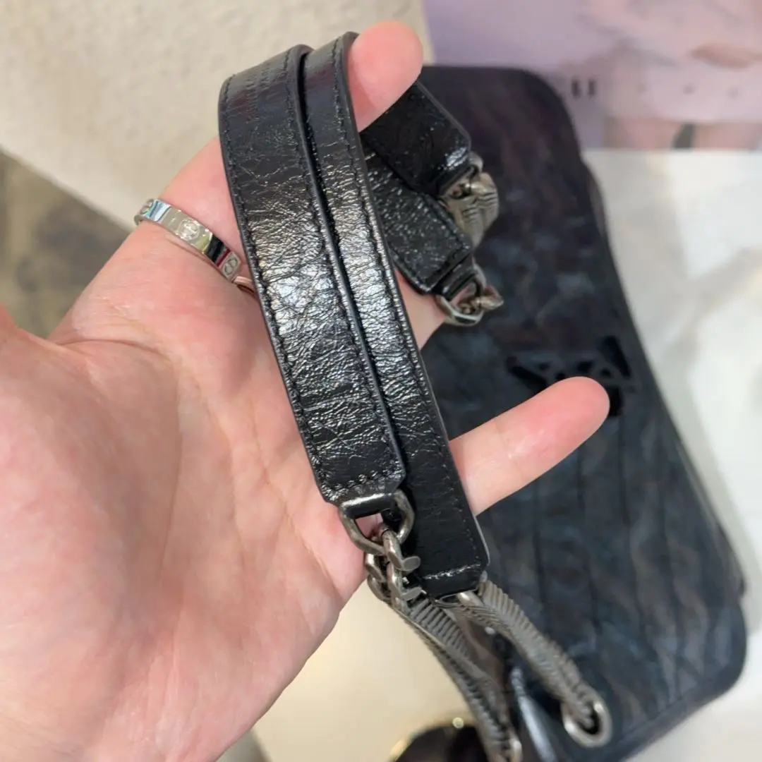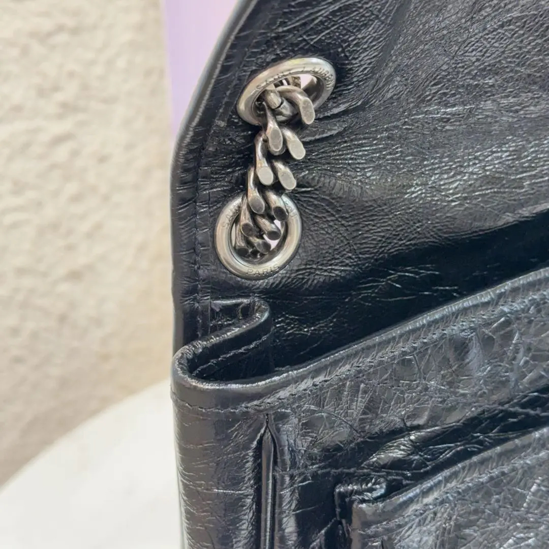 【商品详情】正品二手 YSL Niki Shopping Bag 中号 黑银 油蜡牛皮 斜挎包😏 98新 28*20。永远的经典