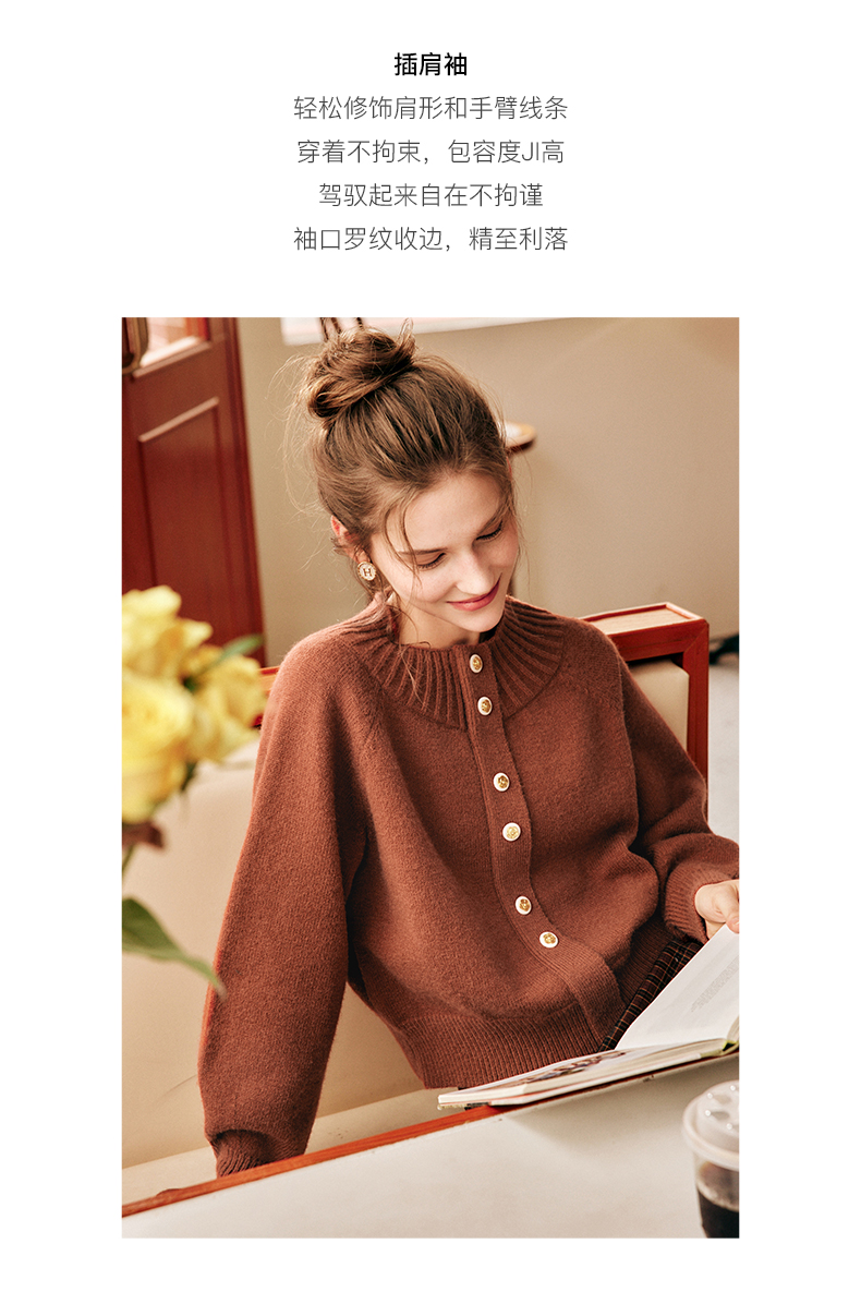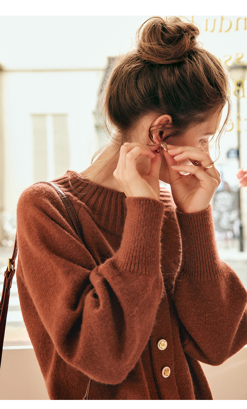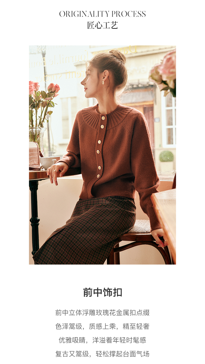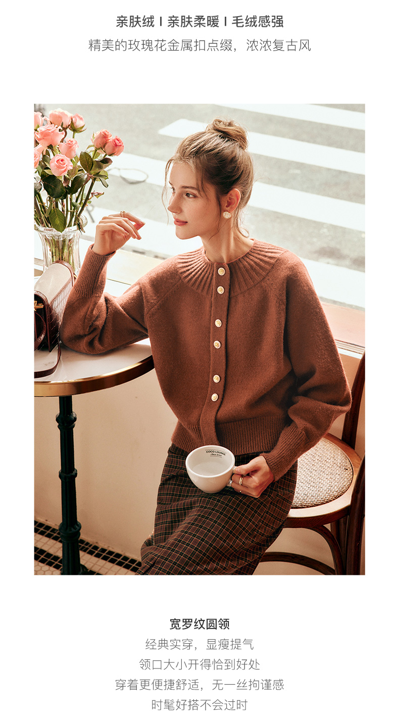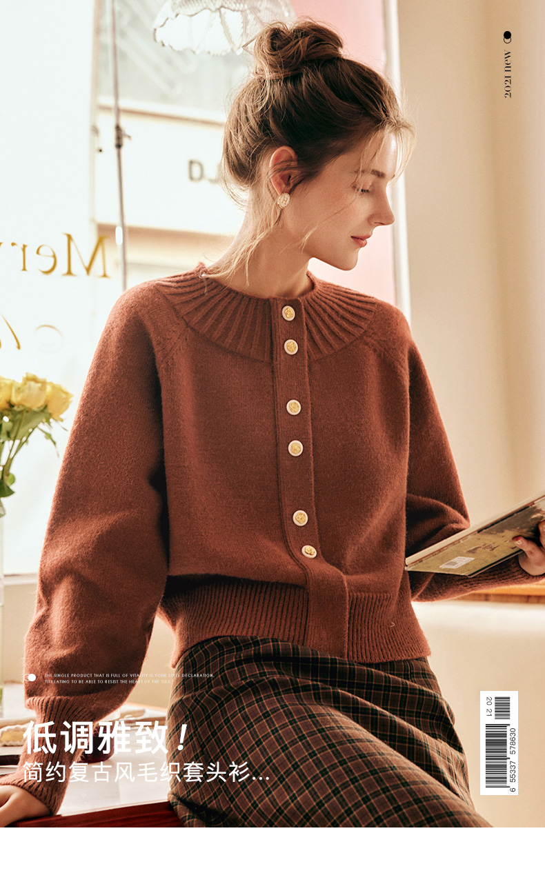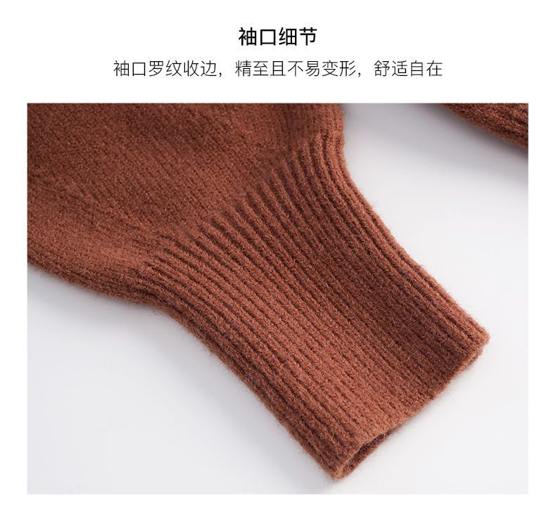 OLrain欧芮儿法式焦糖色毛衣女秋冬2022新款宽松复古落肩袖套头衫
