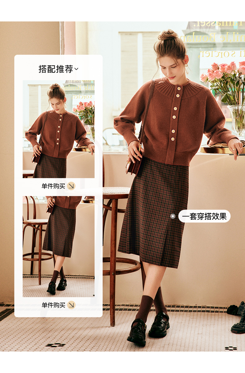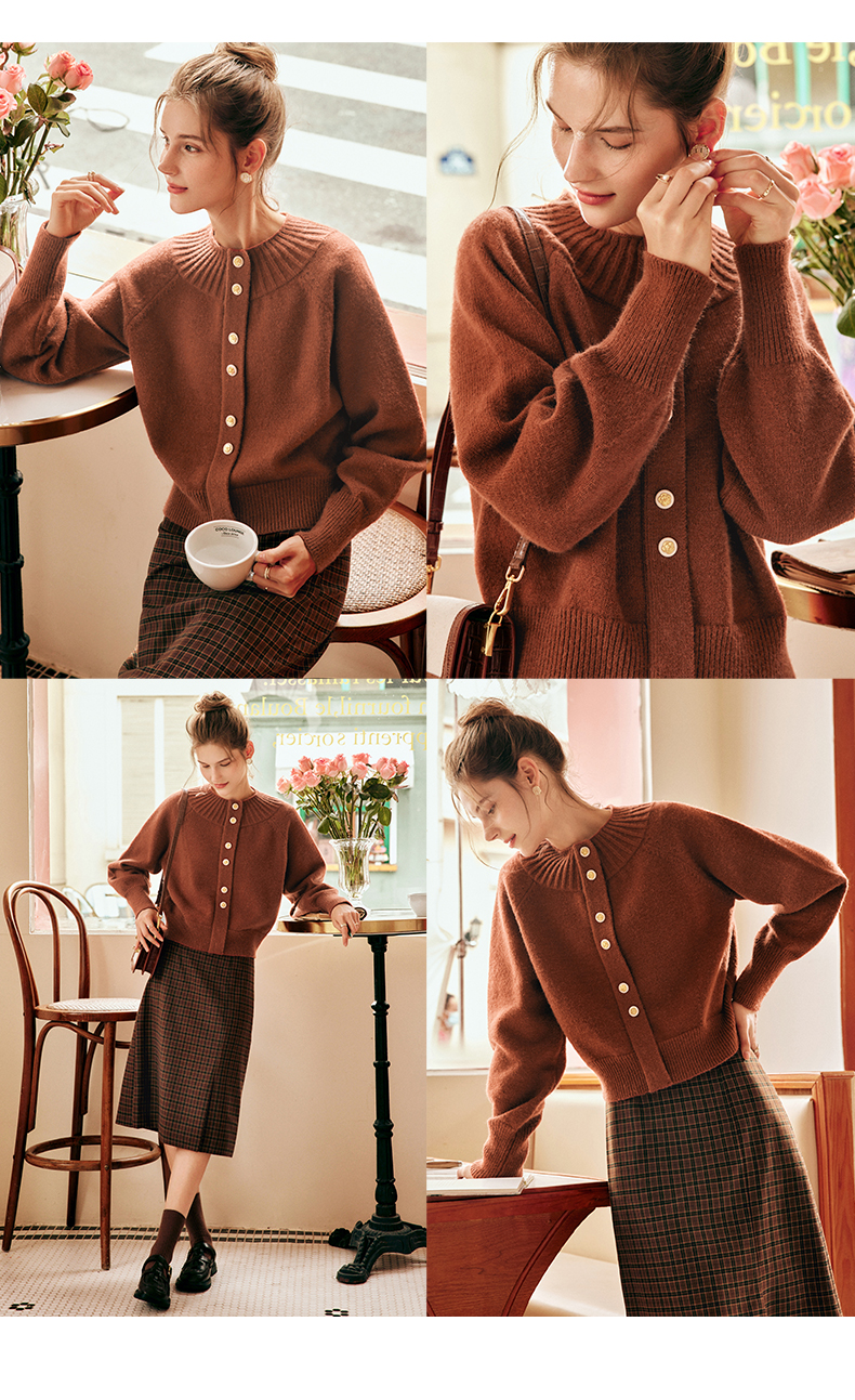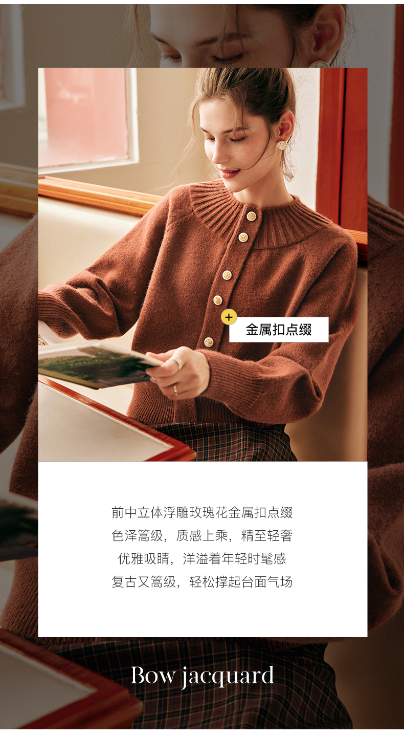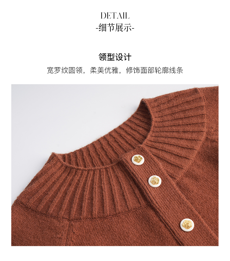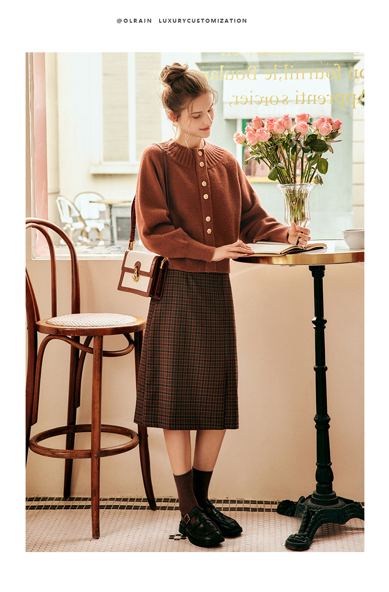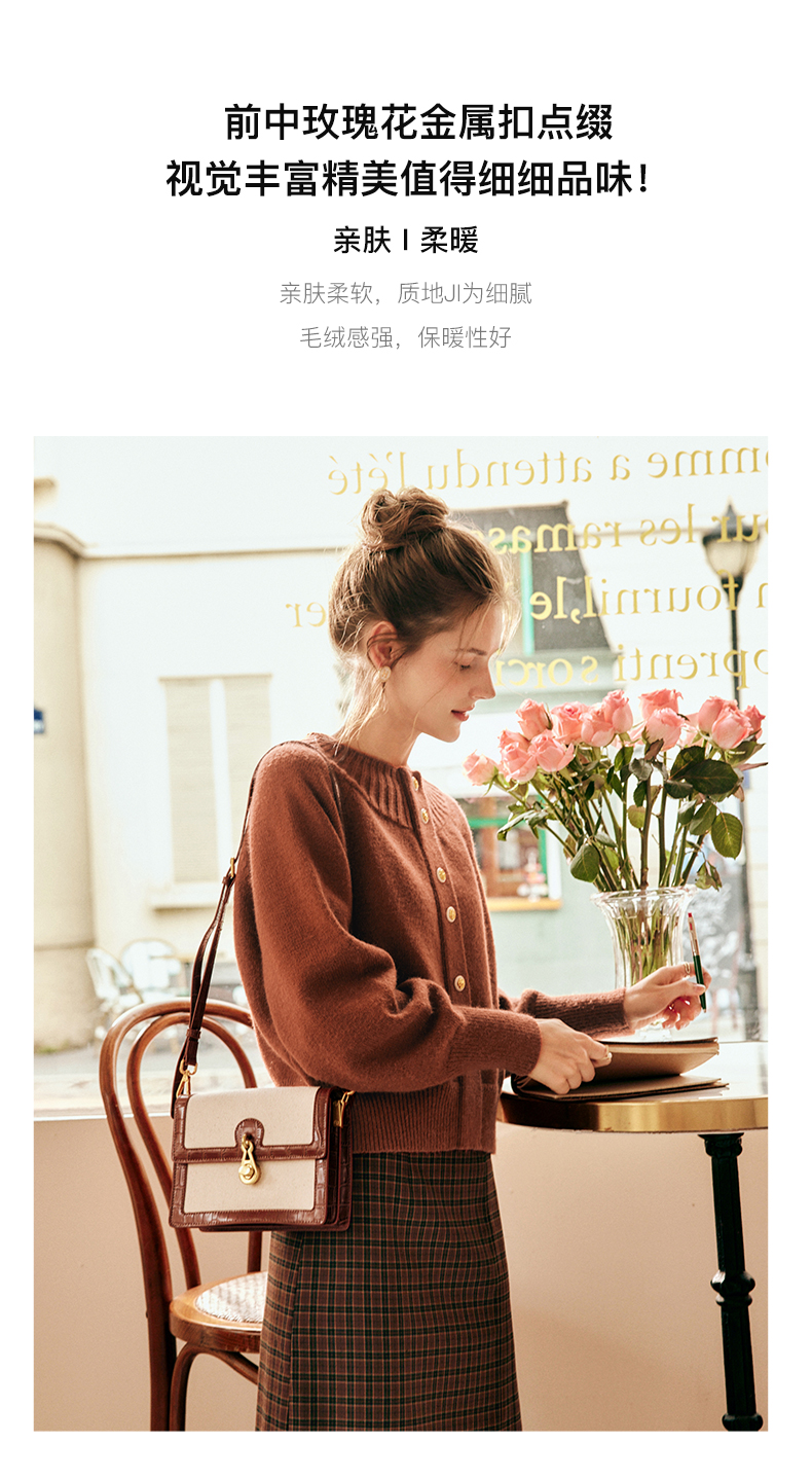 OLrain欧芮儿法式焦糖色毛衣女秋冬2022新款宽松复古落肩袖套头衫