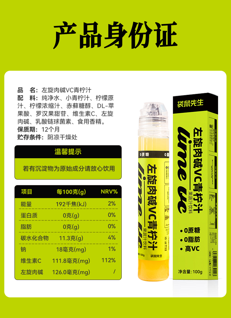 【189元任选20件】袋鼠先生左旋肉碱VC青柠汁/浓缩酸梅汁100g
