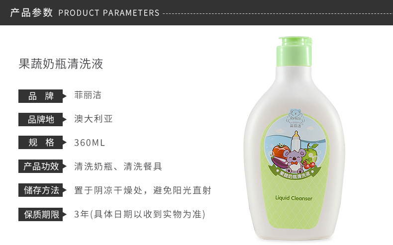FORLISA/菲丽洁 果蔬奶瓶清洗液 360MLJPY带授权招加盟代理