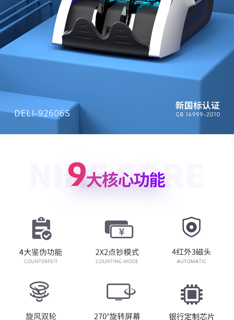 得力(deli)2019年新版人民币点钞机验钞机升级款 银行专用 双屏语音商用家用点钞机数钱机 92606S
