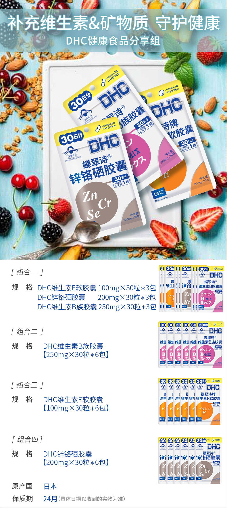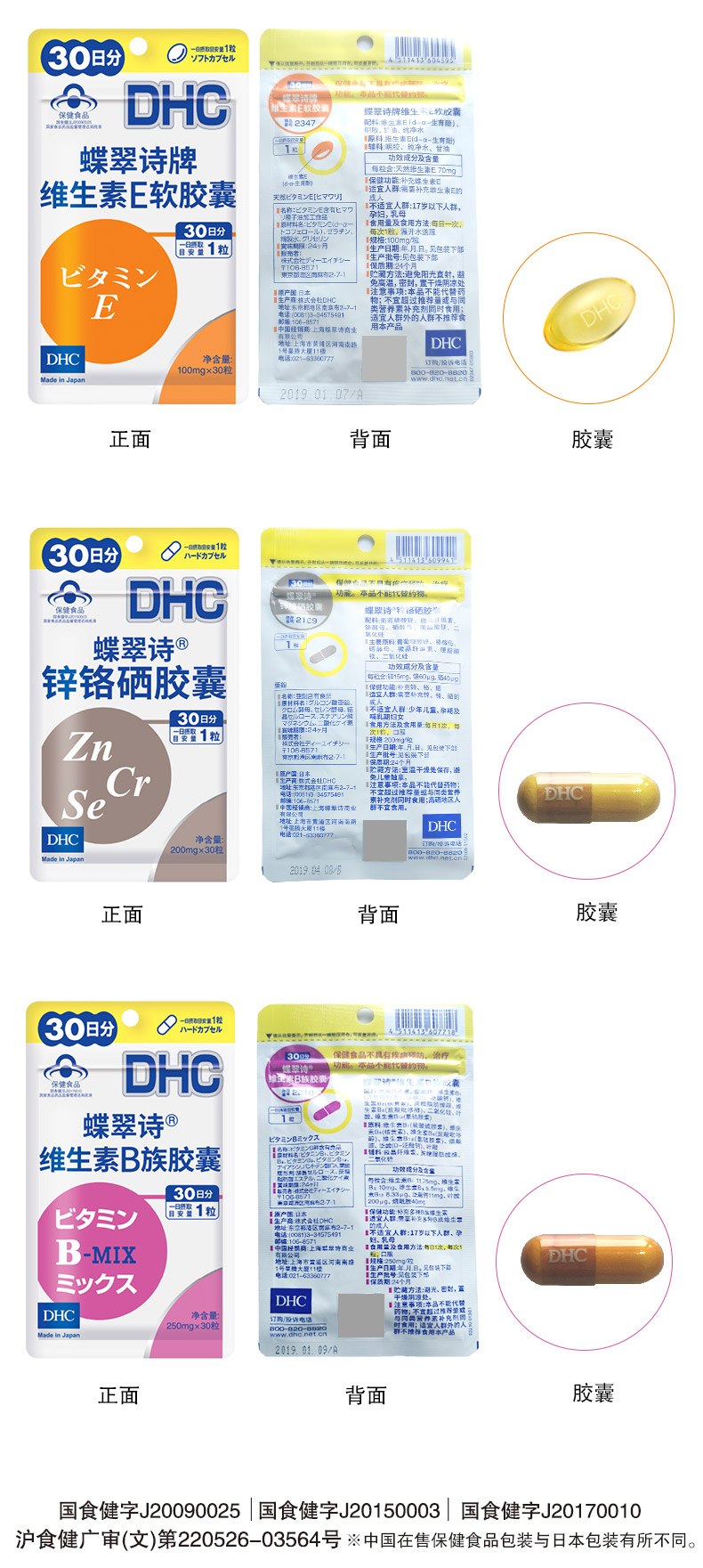 【双11预售】DHC综合维生素健康保健食品分享组 维B/E/锌铬硒胶囊JPY带授权招加盟代理