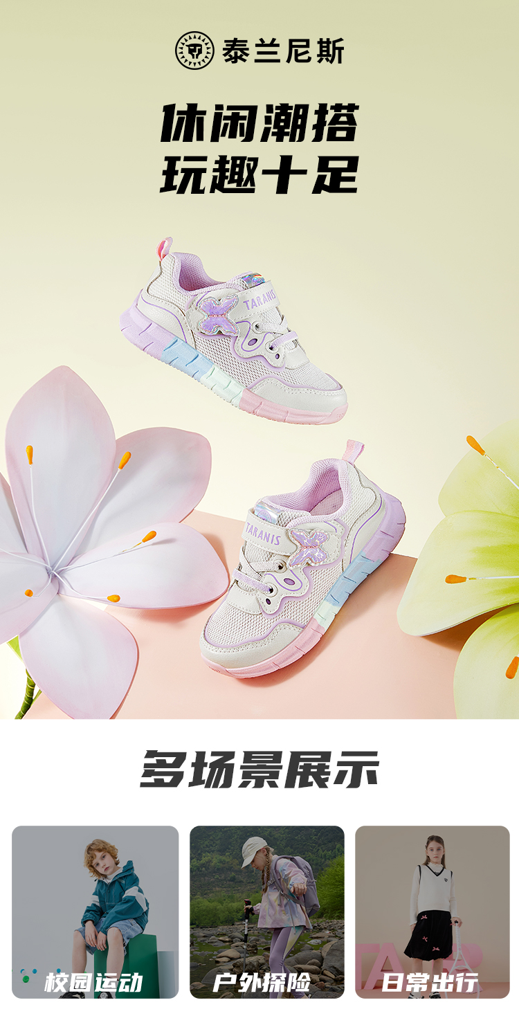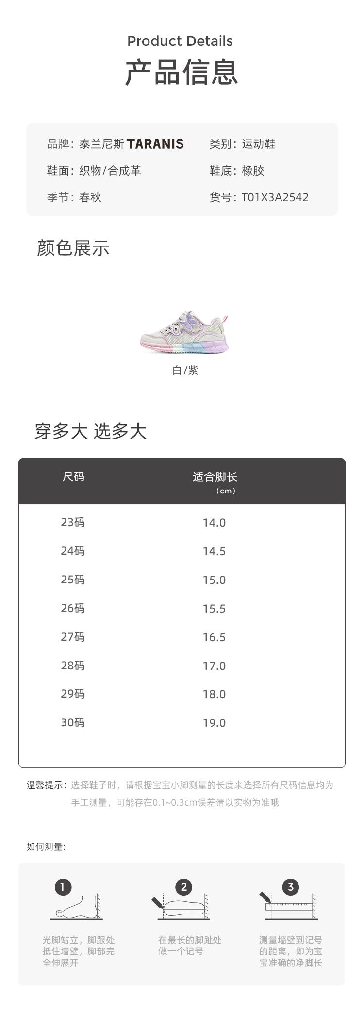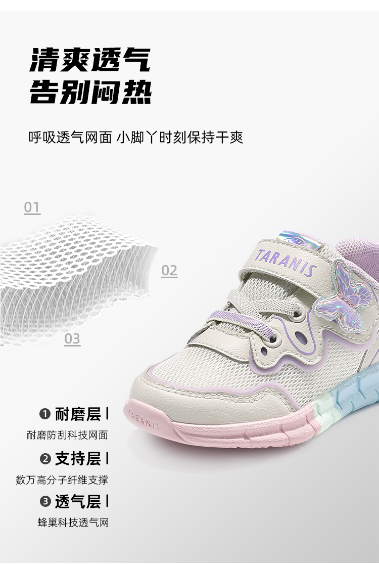 泰兰尼斯春款小童段舒适潮搭透气女童运动鞋T01X3A2542