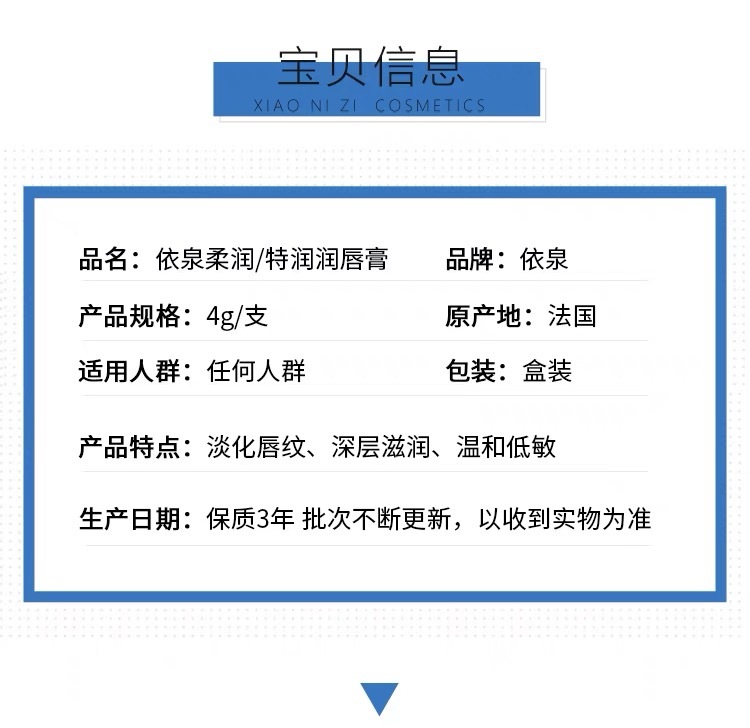 【多妈团购 法国依泉润唇膏】小白管/小蓝管,养出水嫩嘟嘟唇,修护级配方,唇纹、死皮、干裂通通消灭,蓝管晚上涂,白管白天涂,日滋夜养-金克丝
