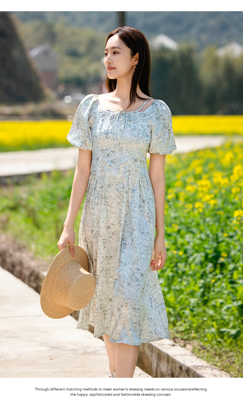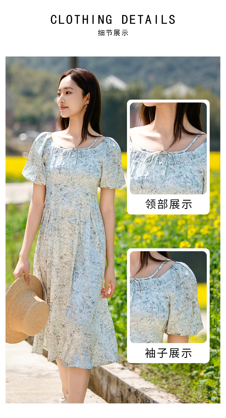 NUTS夏季新款休闲碎花气质仙女风连衣裙女425101245