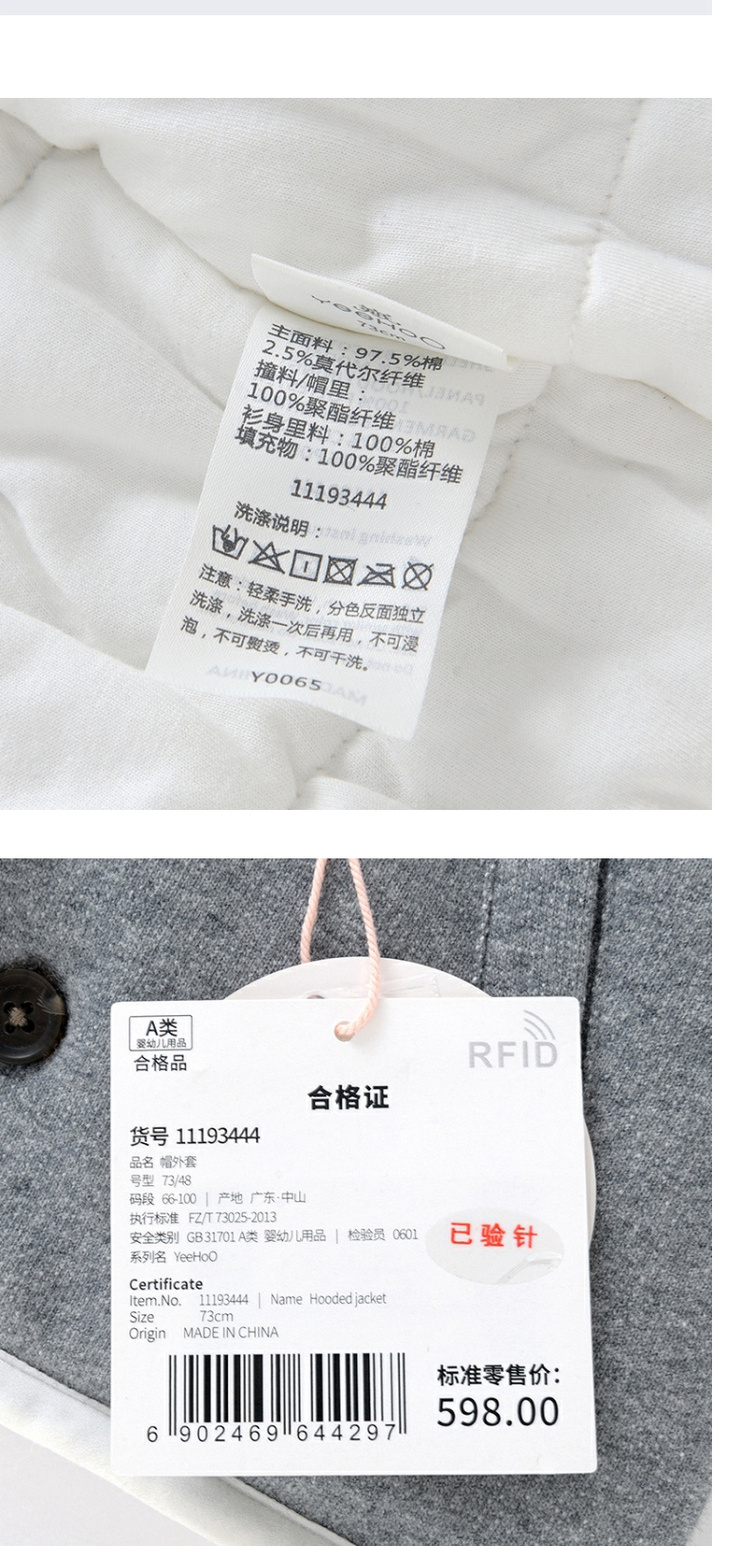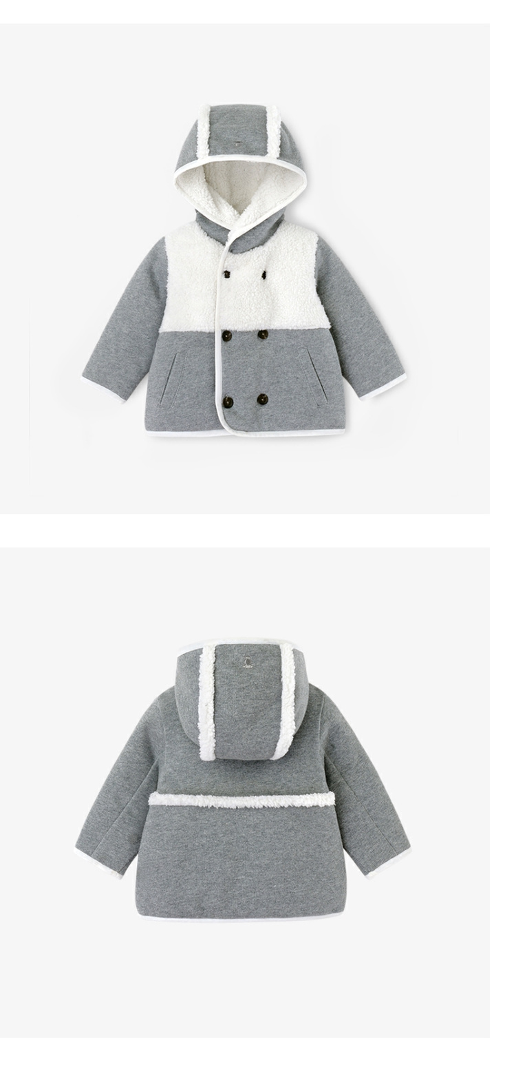 英氏-童衣类(冬)C9英针短帽外套 铅花灰