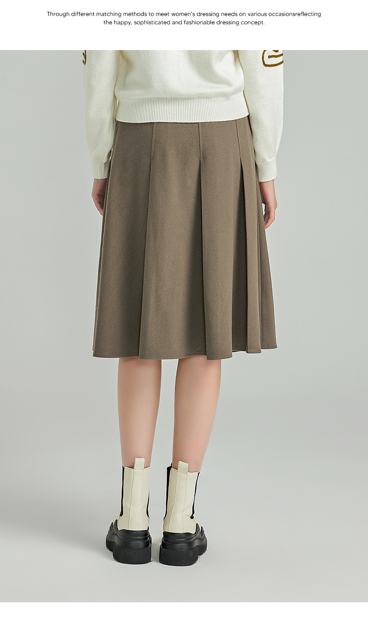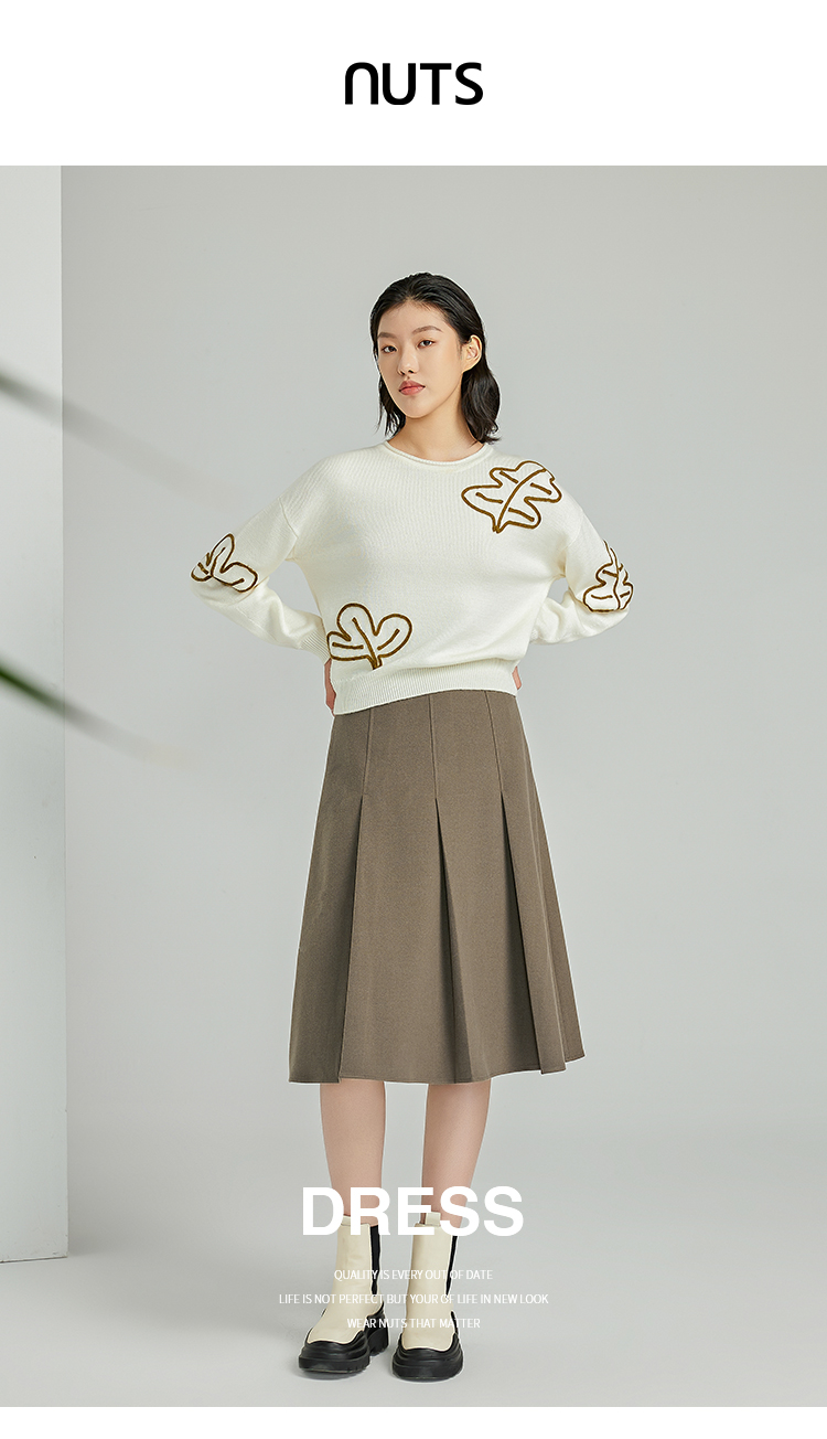 NUTS春秋季新款学院风气质百褶裙中长款半身裙女411061357