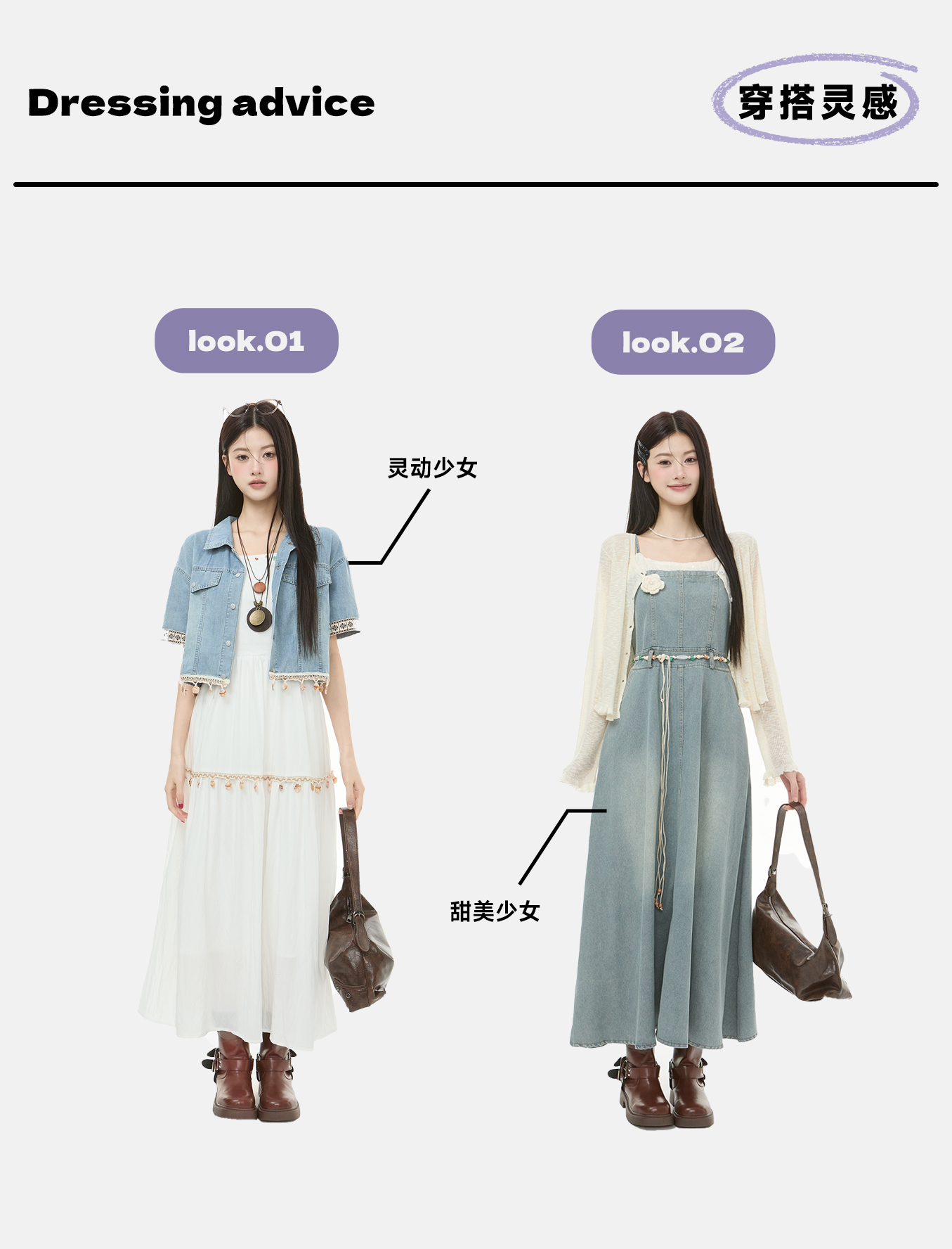 P&X设计师女装2025秋季连衣裙吊带外披套装长裙825314172 杏/蓝