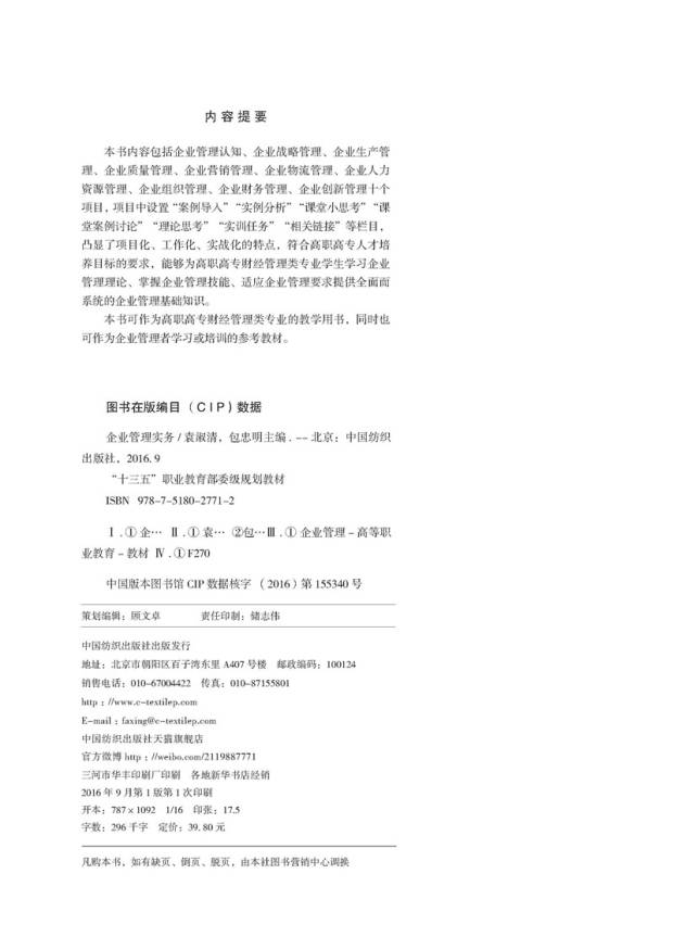 【正版】企业管理实务 袁淑清 编制企业计划 制定企业目标 企业生产管理 企业质量管理 中国纺织出版社 畅销书籍