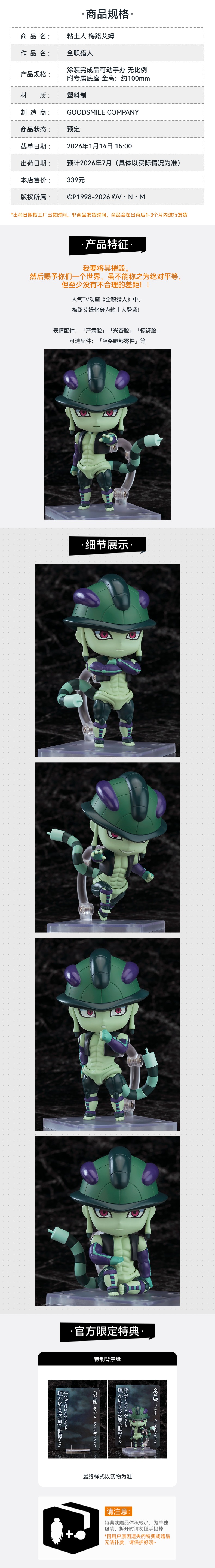 【GSC预售定金】粘土人 梅路艾姆 全职猎人 附官方限定特典