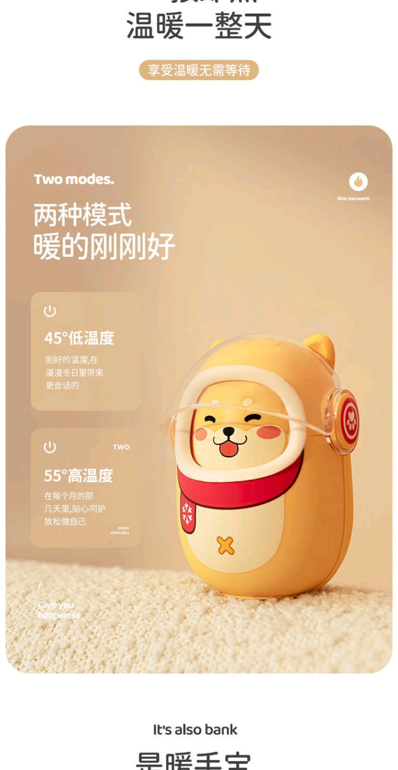 会变脸的暖手宝 圣诞二合一充电暖手宝新年暖宝宝USB礼物