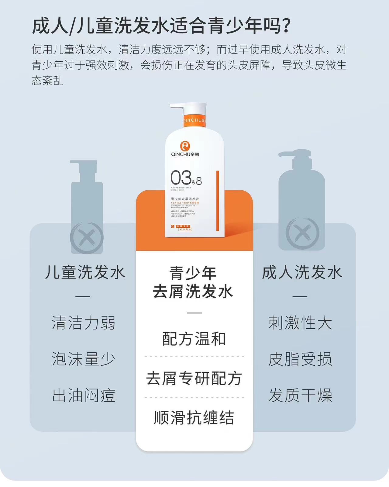 🧑🏻👩🏻亲初青少年去屑洗发液 专为青少年去屑研制,采用OCT成分严苛配比不仅去除头屑,还帮助改善头皮环境。去油能力也很不错,更好的解决孩子出油大、头屑多等问题。