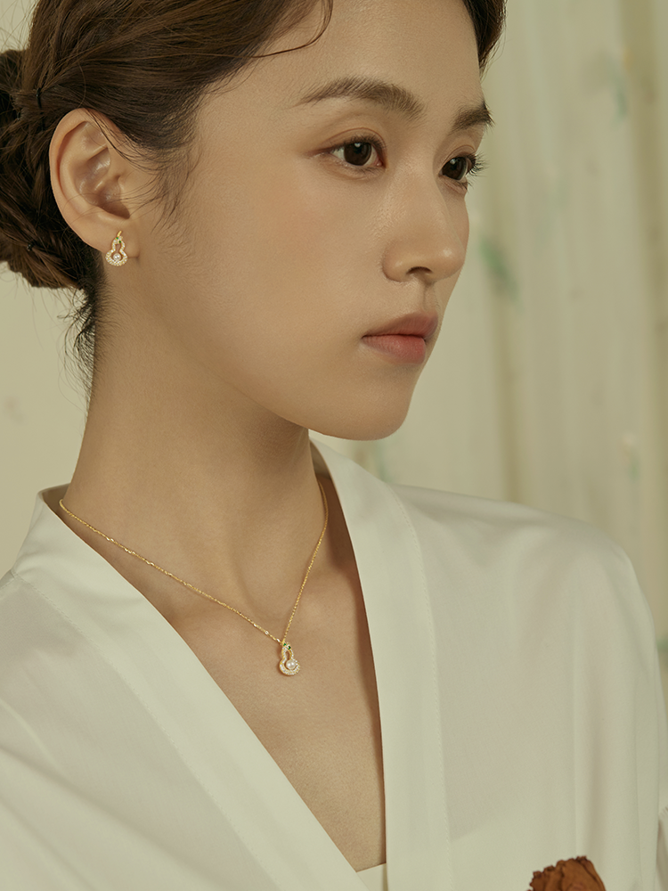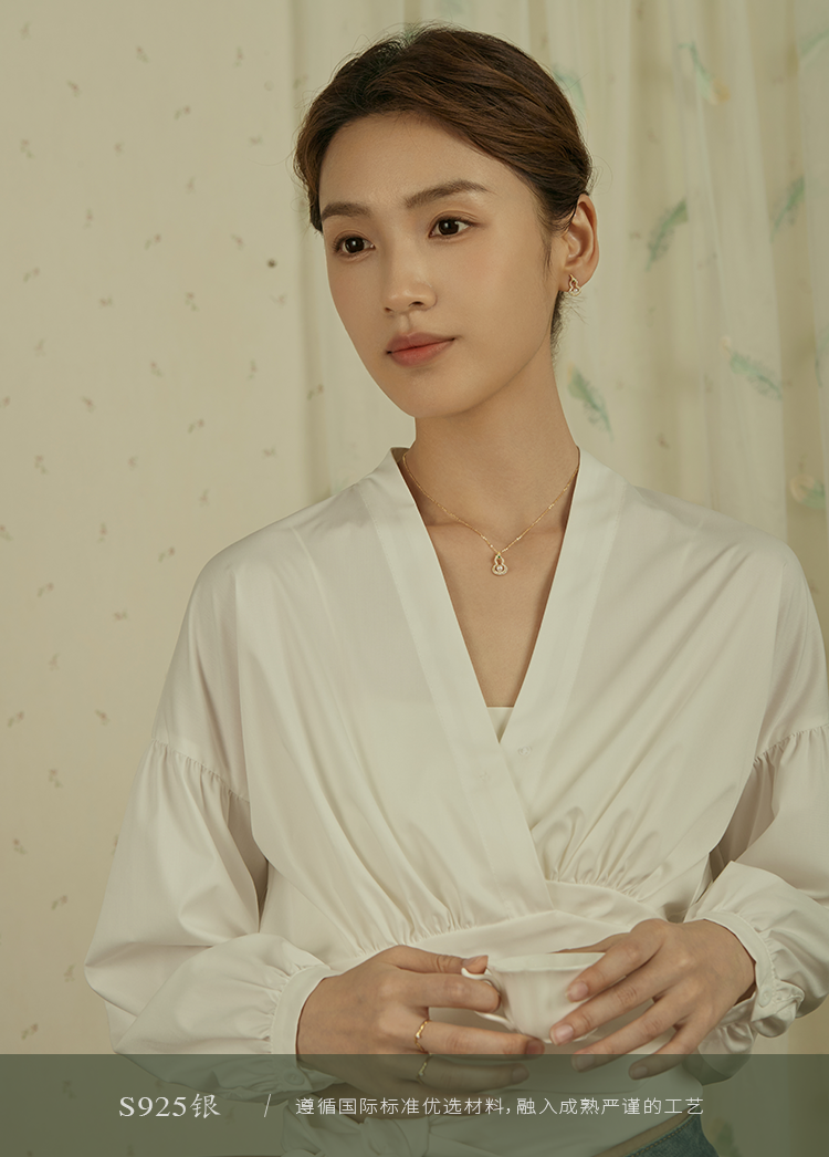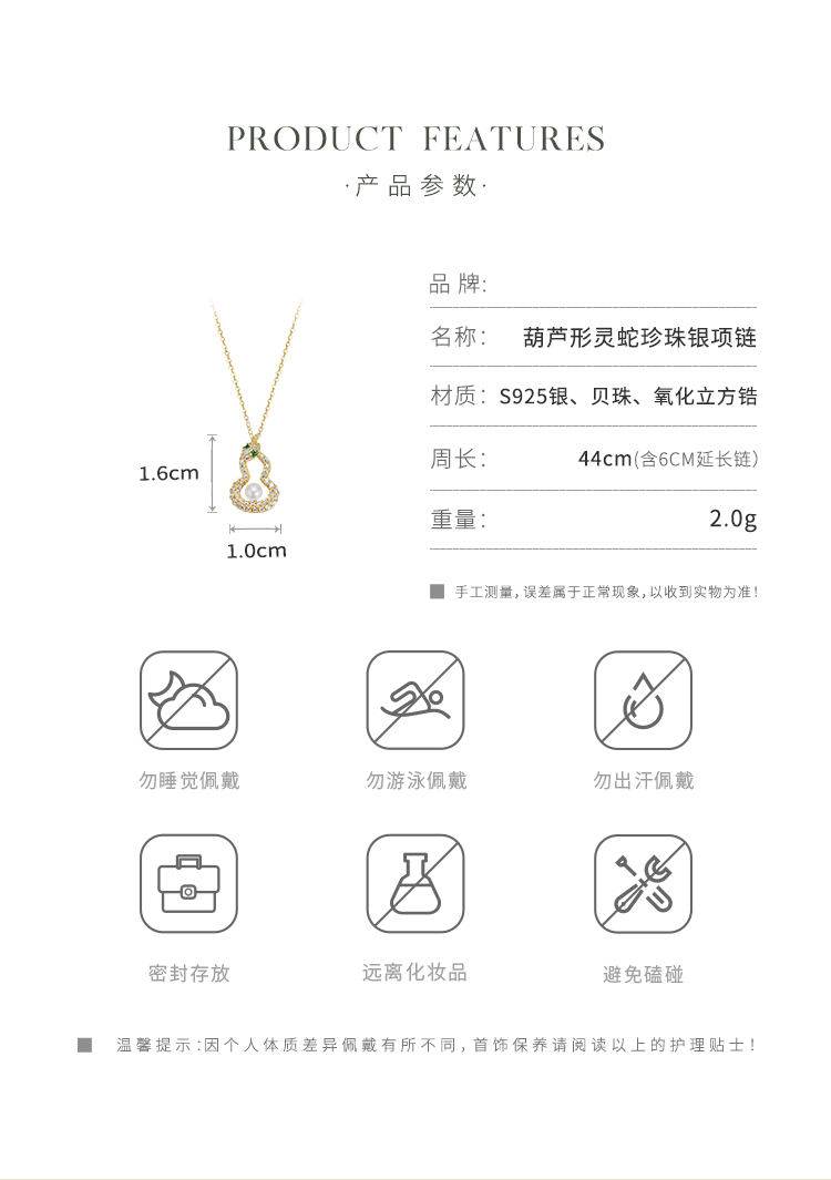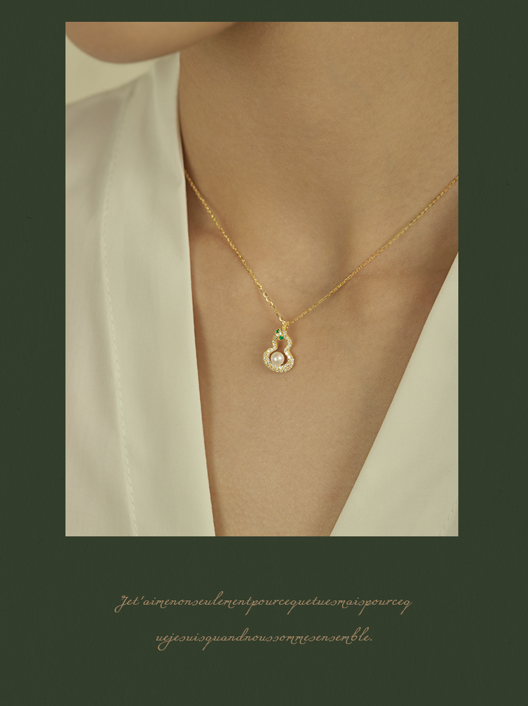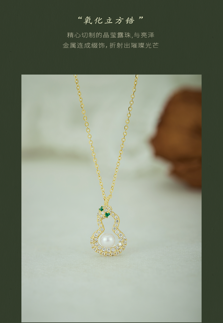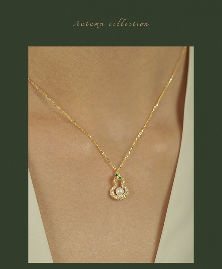 Oflye潮流饰品 S925银灵蛇围绕珍珠葫芦项链女新款小众设计轻奢高级感配饰