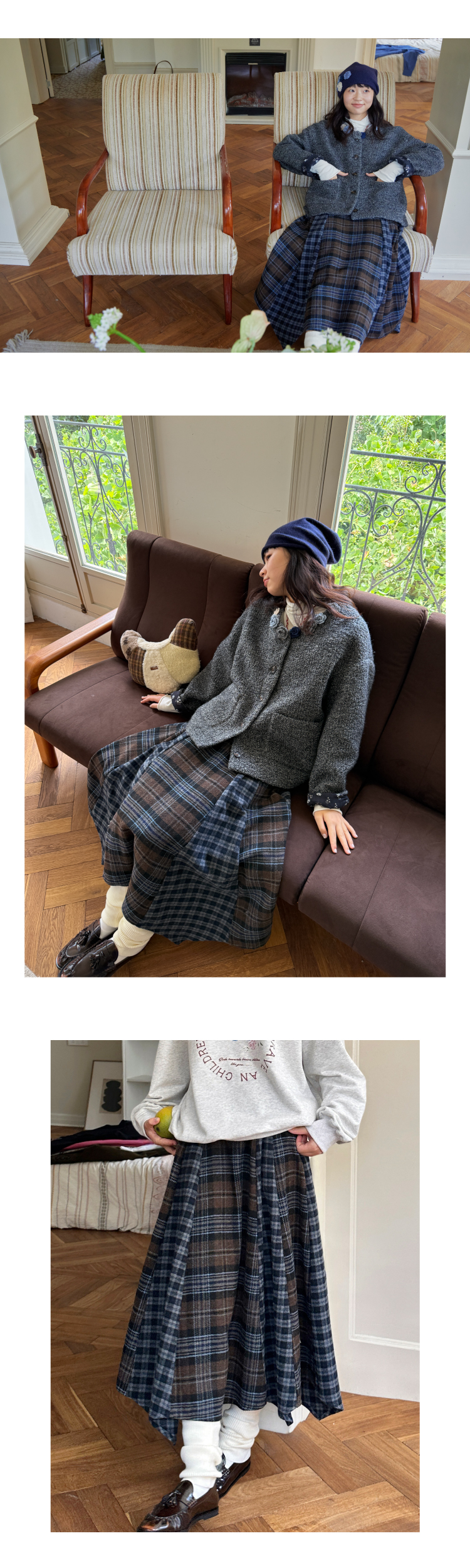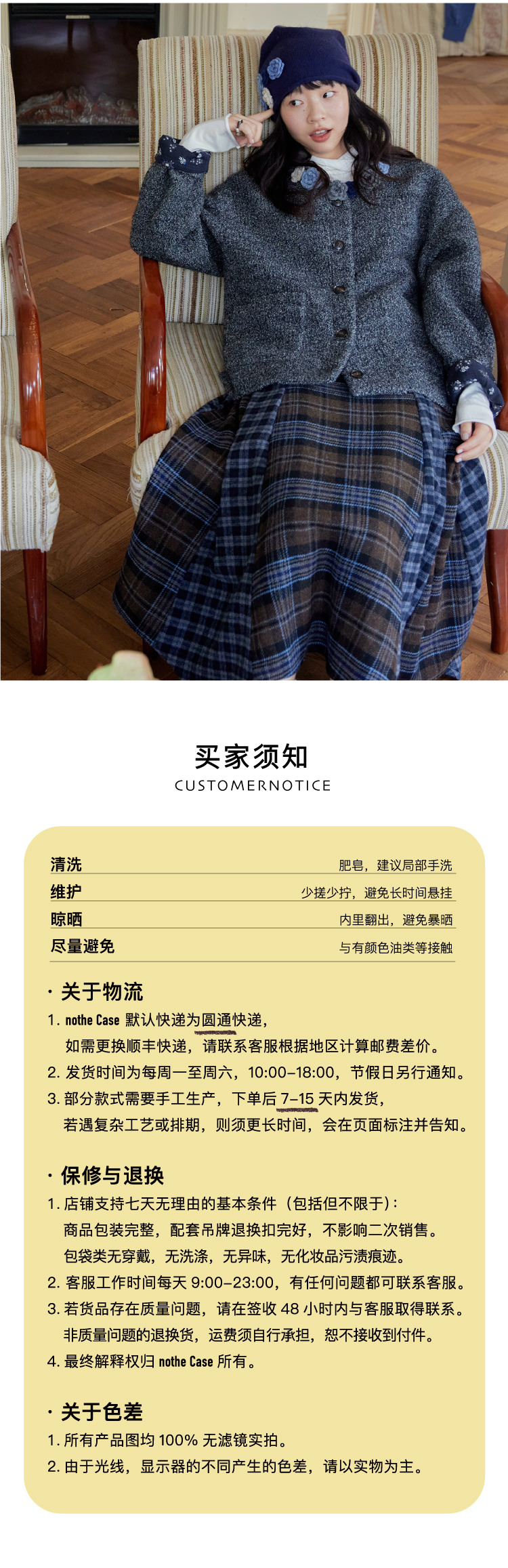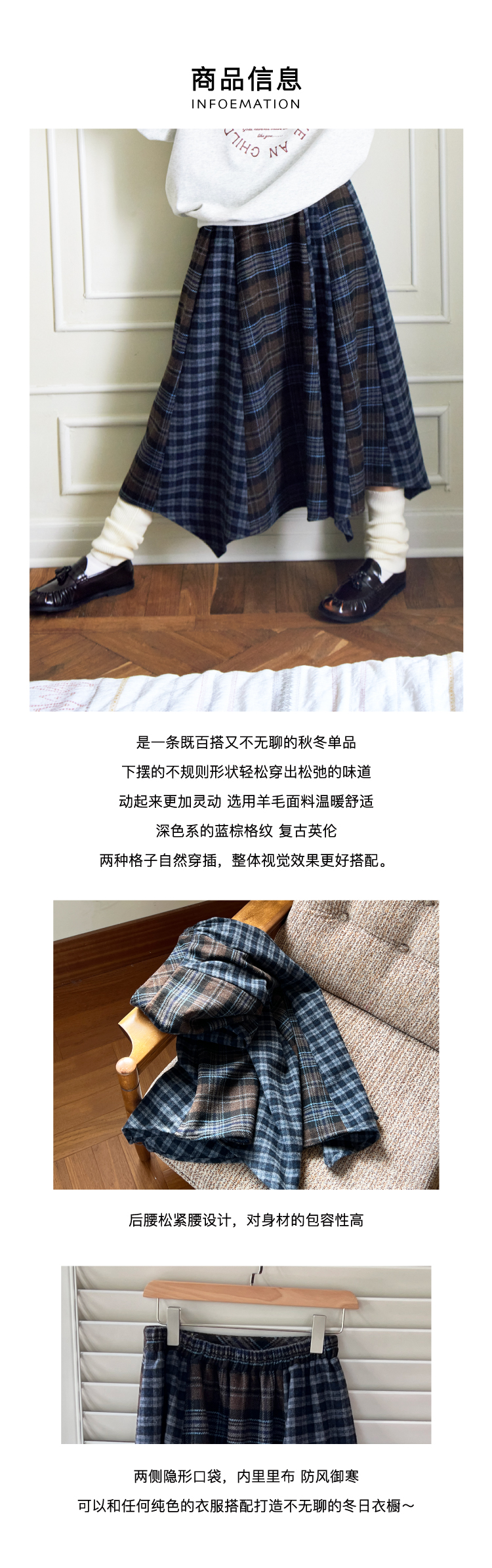 nothe Case布然/NC253207/「栗岛木屋」不规则拼接格纹半裙