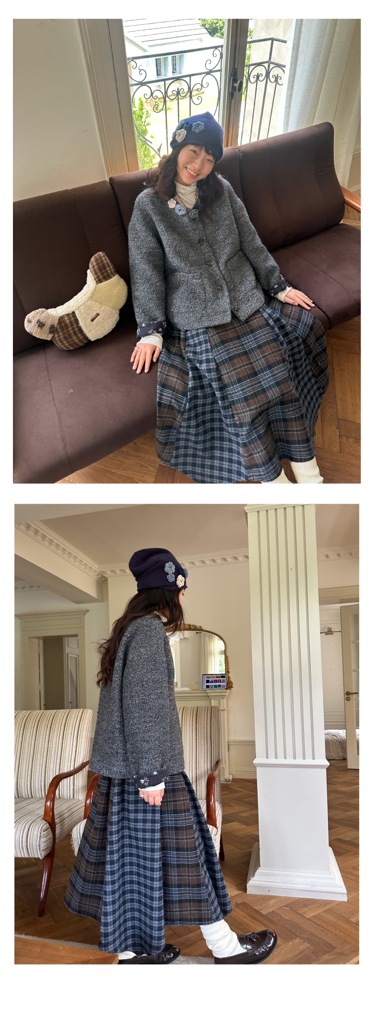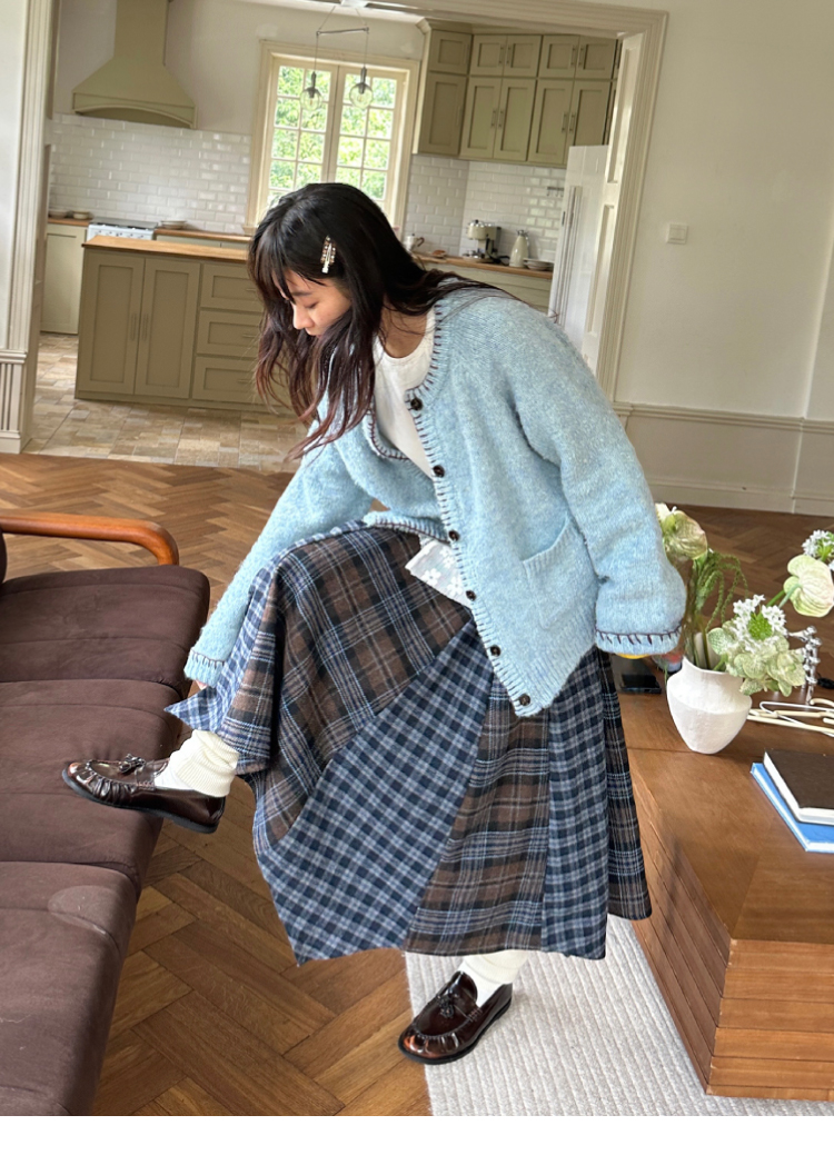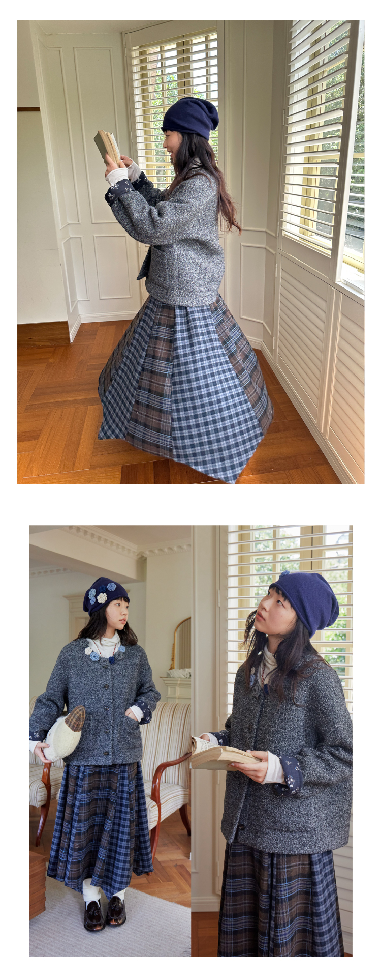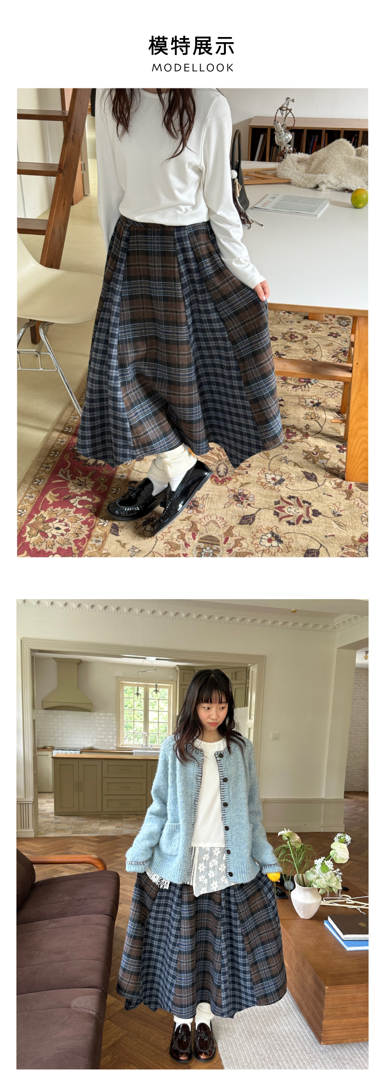 nothe Case布然/NC253207/「栗岛木屋」不规则拼接格纹半裙