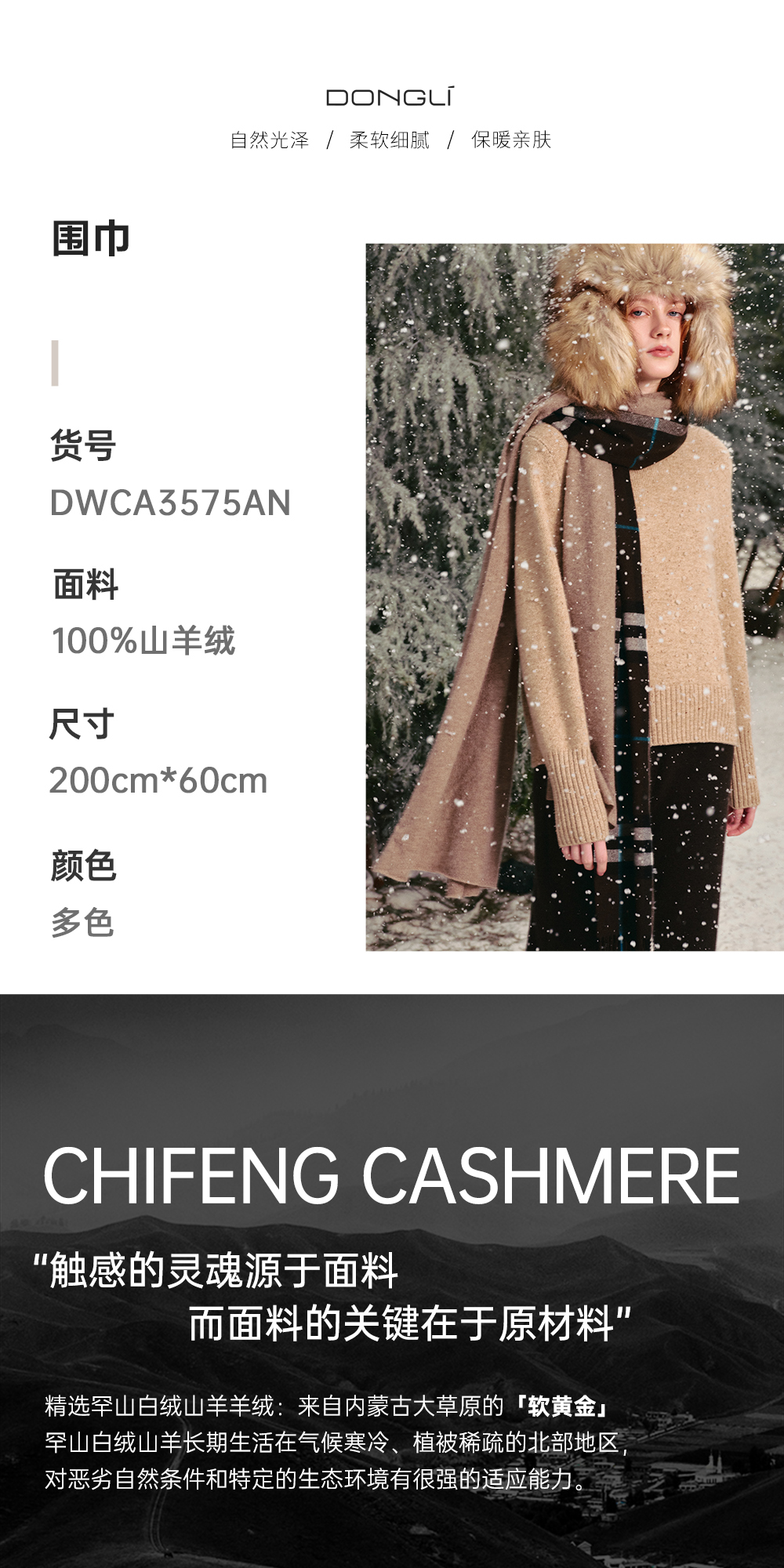 东黎羊绒是赤峰东荣集团自主品牌,自有牧场/羊绒制品全产业链优势,实现了羊绒从“牧场”到“商场”的华丽转变。