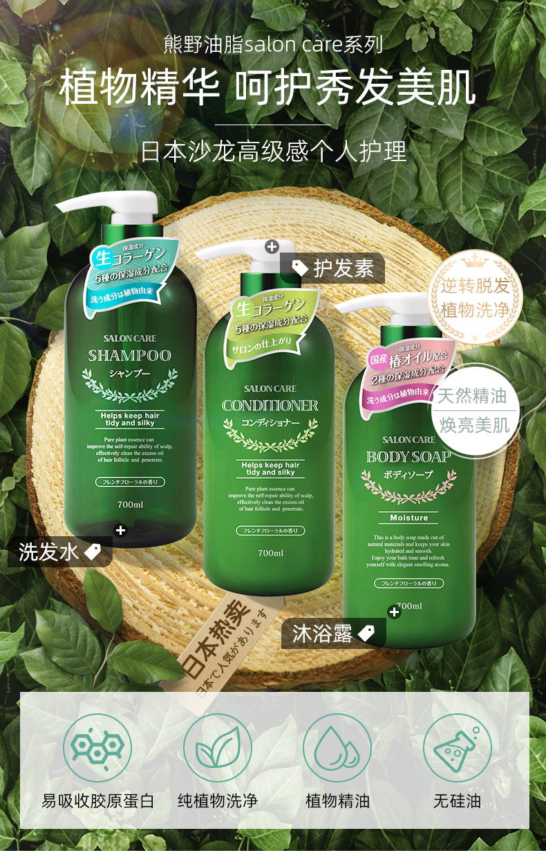 日本熊野油脂植物沙龙健发保湿洗发水护发素沐浴露