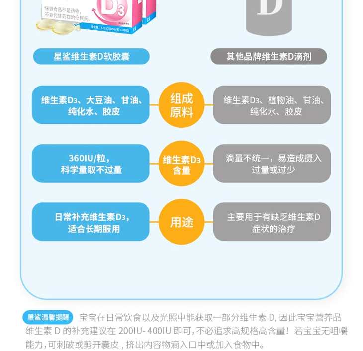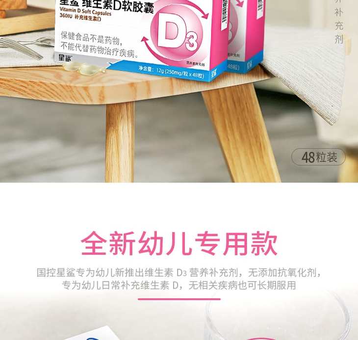 星鲨 维生素D软胶囊48粒*3盒 1岁以上