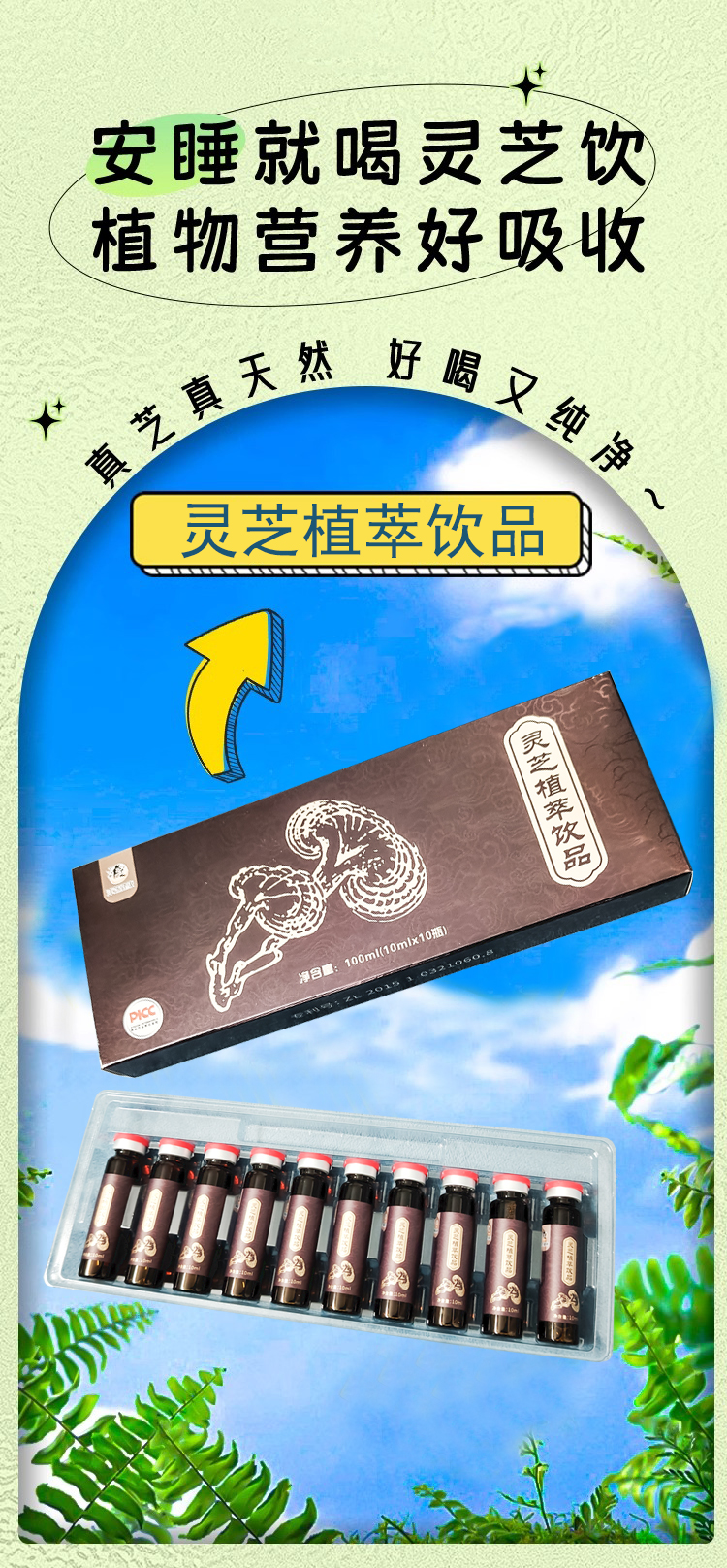 沣芝健康 灵芝口服液 灵芝植萃饮品 植物营养好吸收 活力翻倍 10ml*10瓶