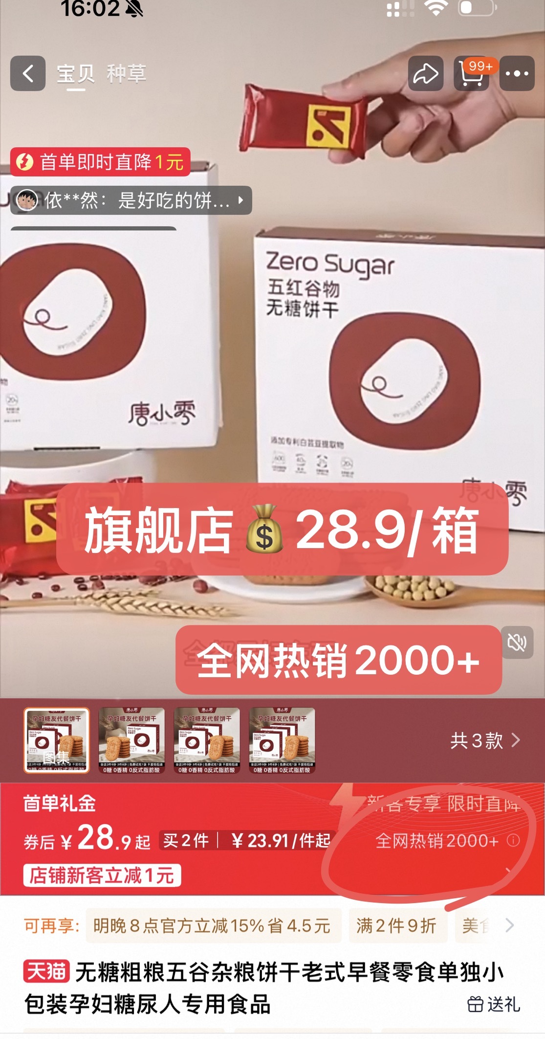 🔻五红谷物无糖饼干:40%高钙➕20%高蛋白
