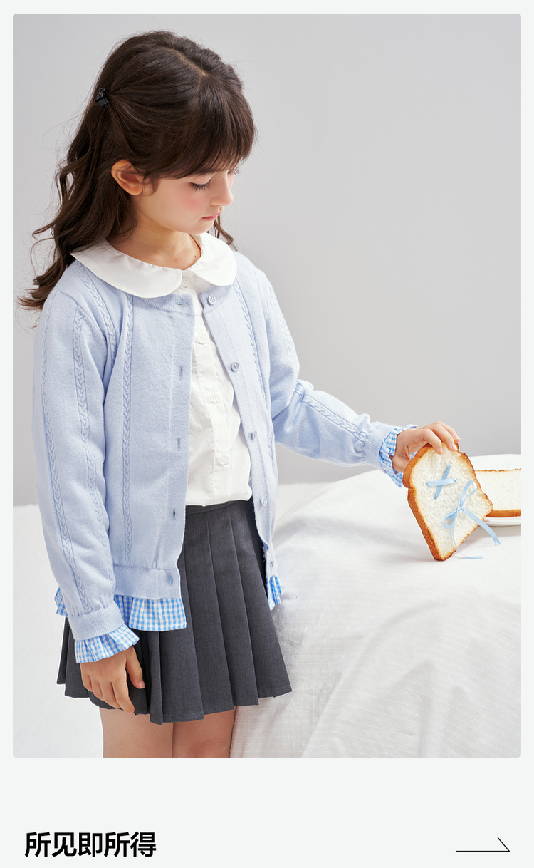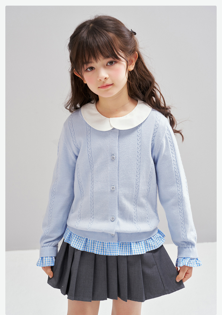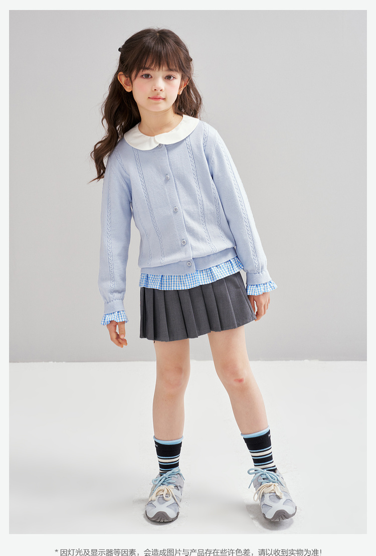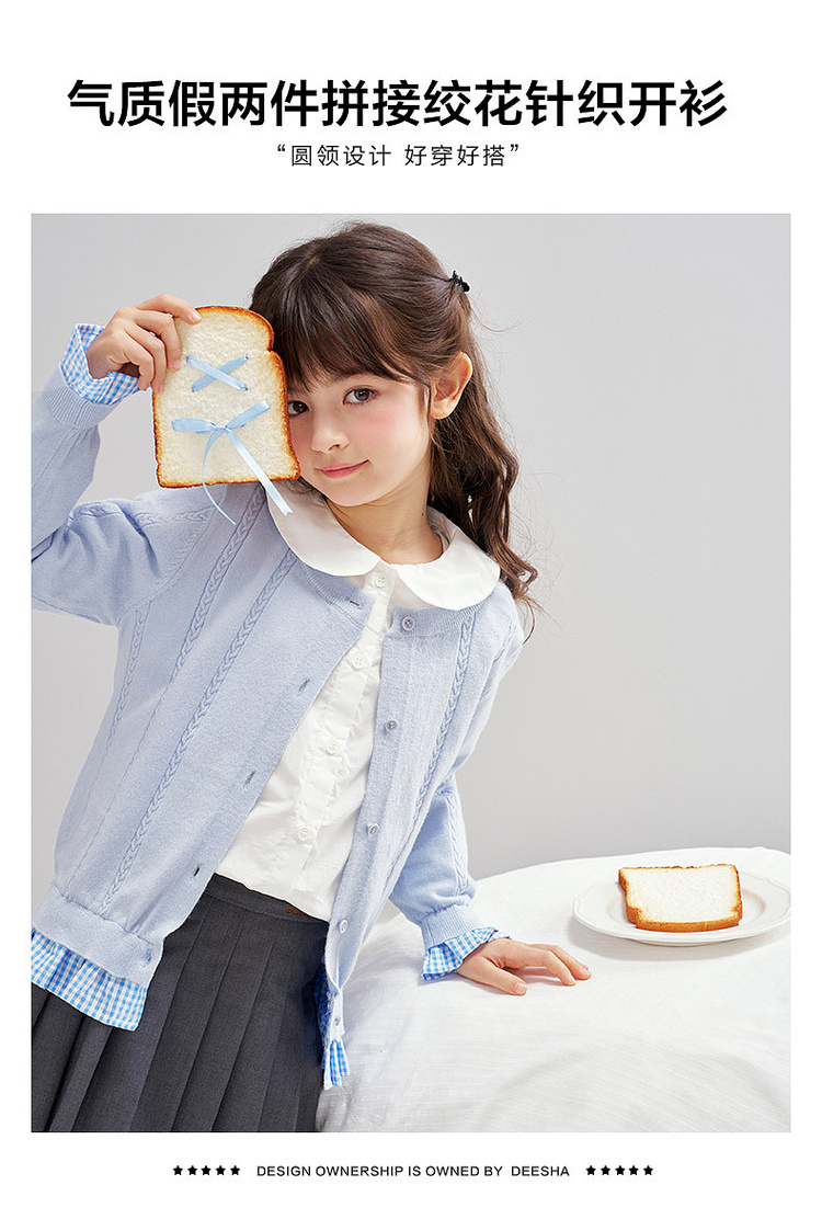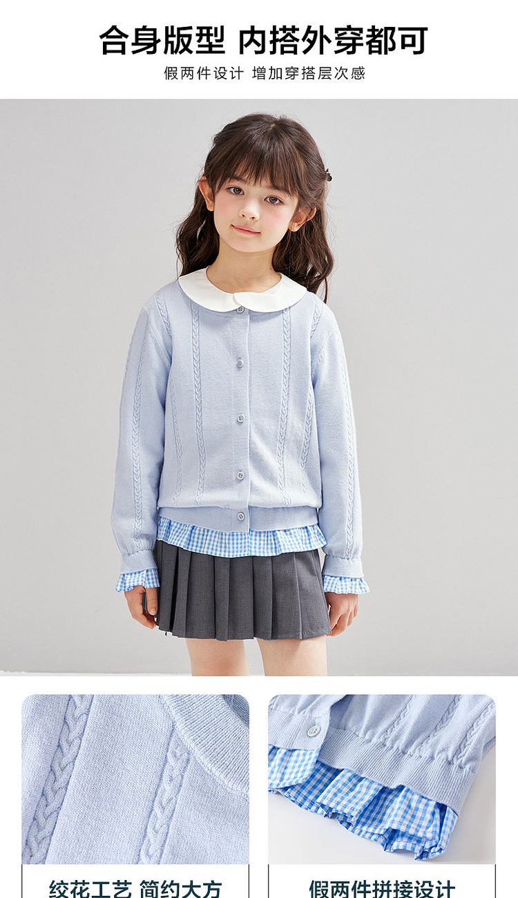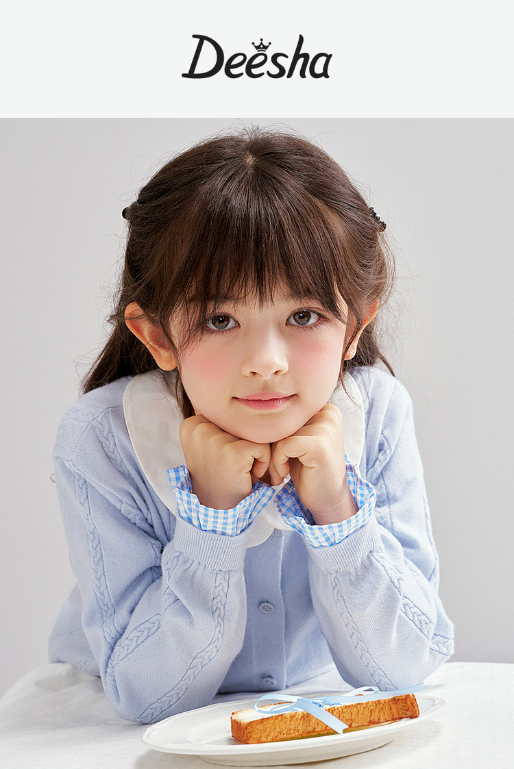 笛莎Deesha 2026春季女童气质假两件拼接绞花针织开衫