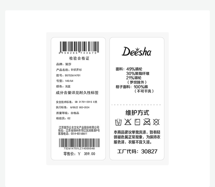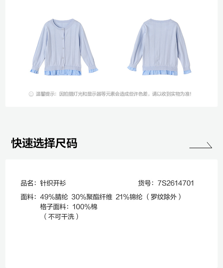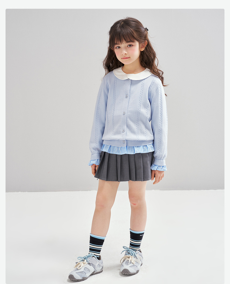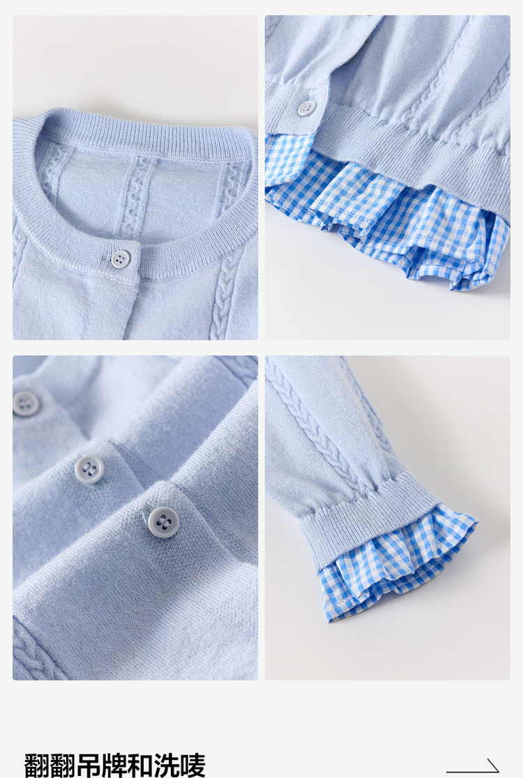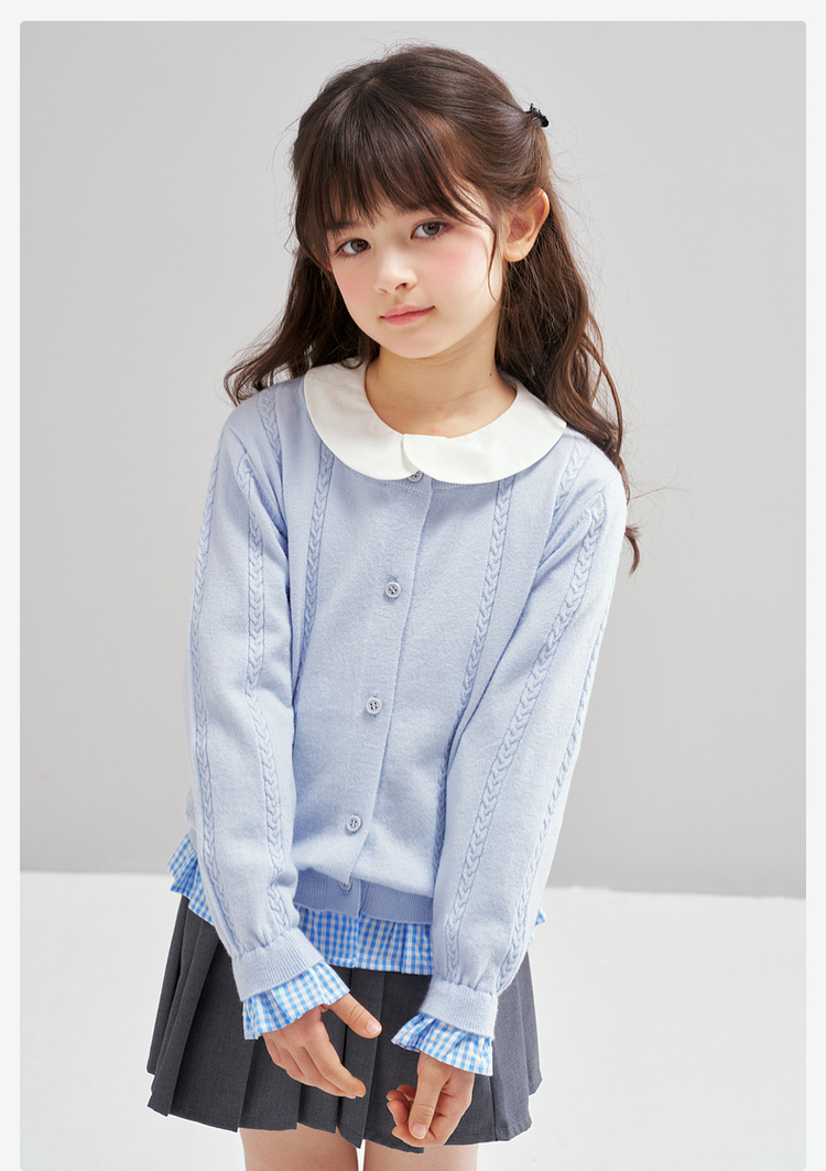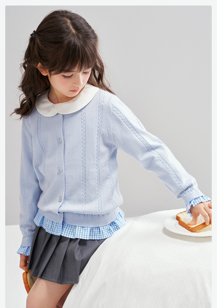 笛莎Deesha 2026春季女童气质假两件拼接绞花针织开衫