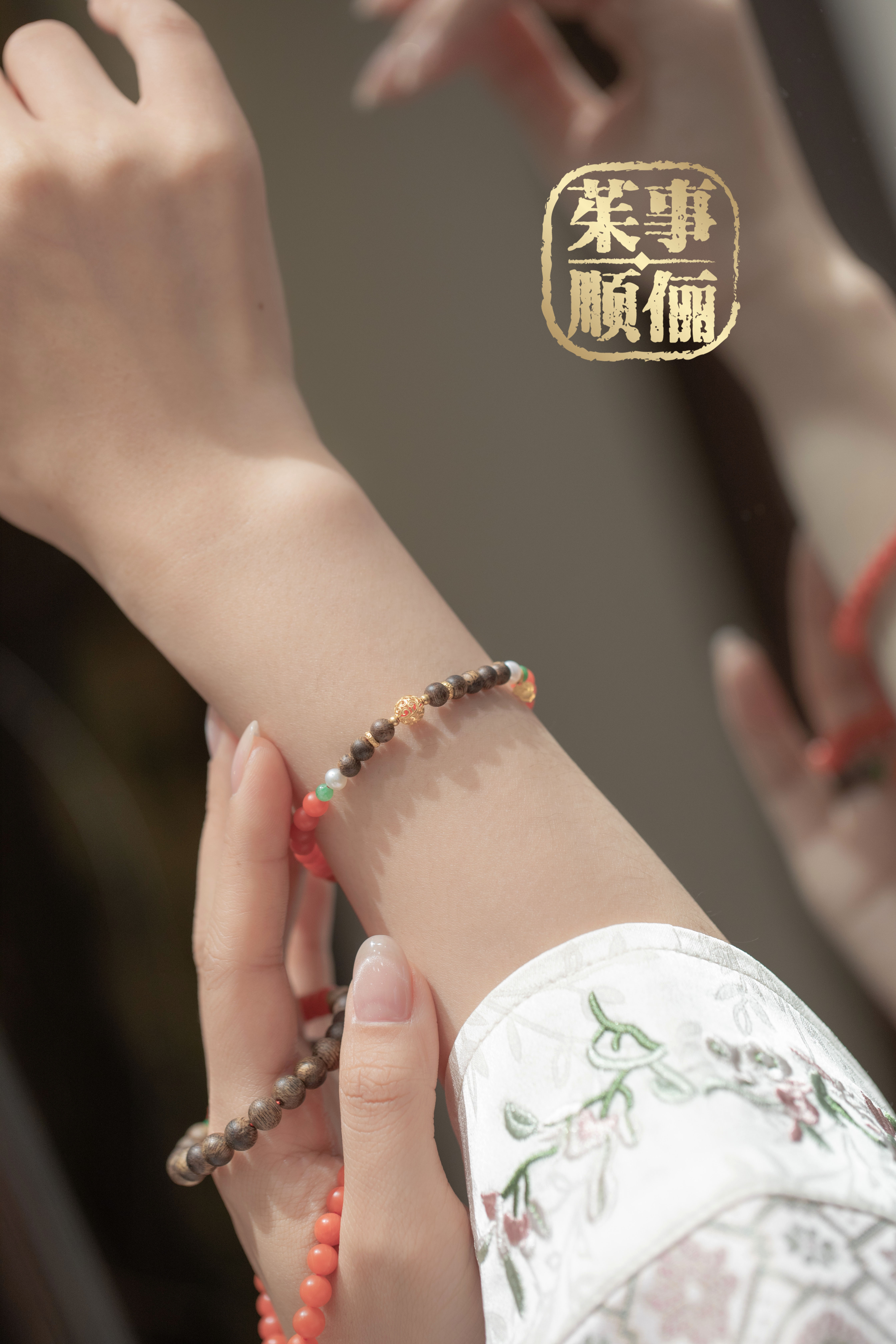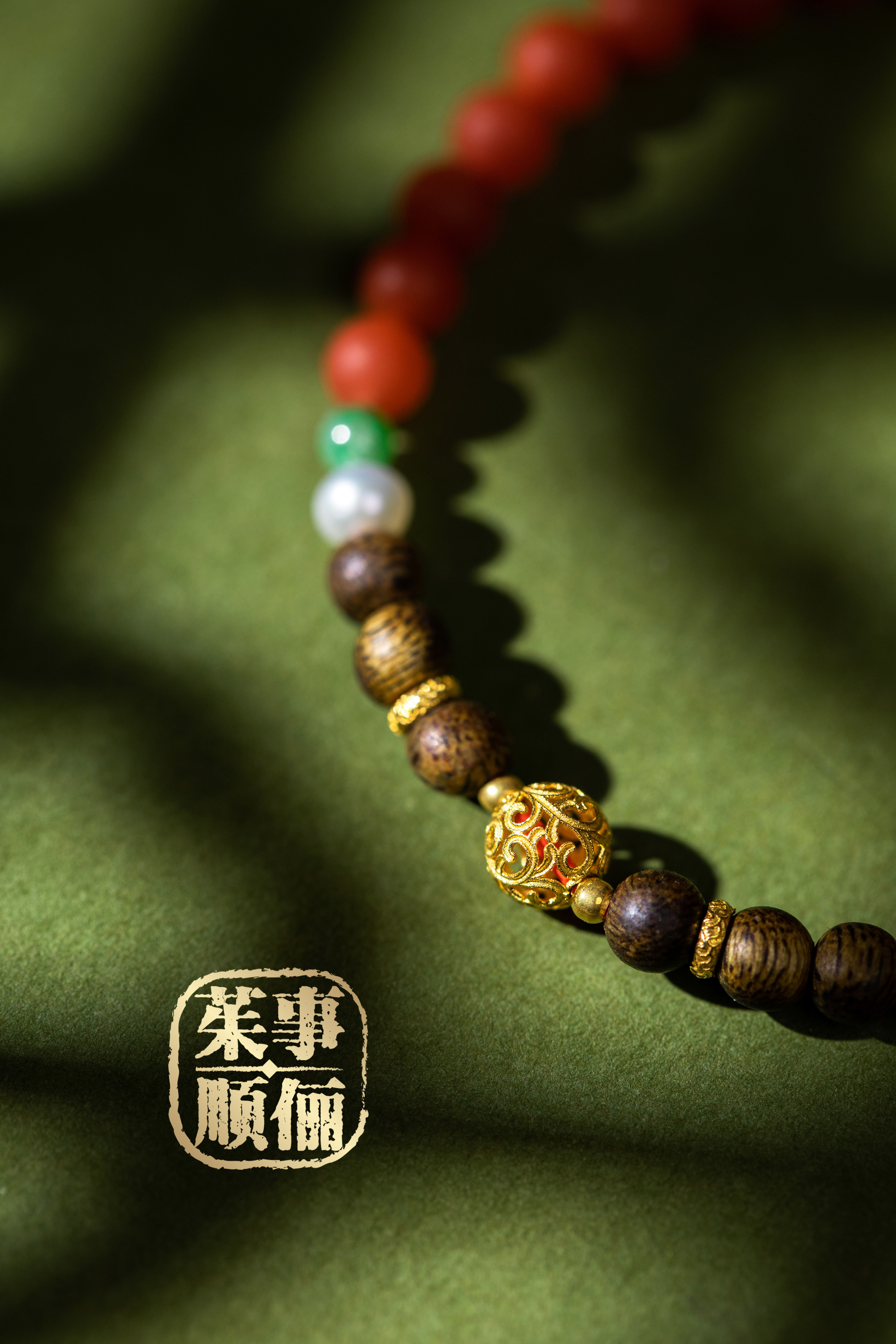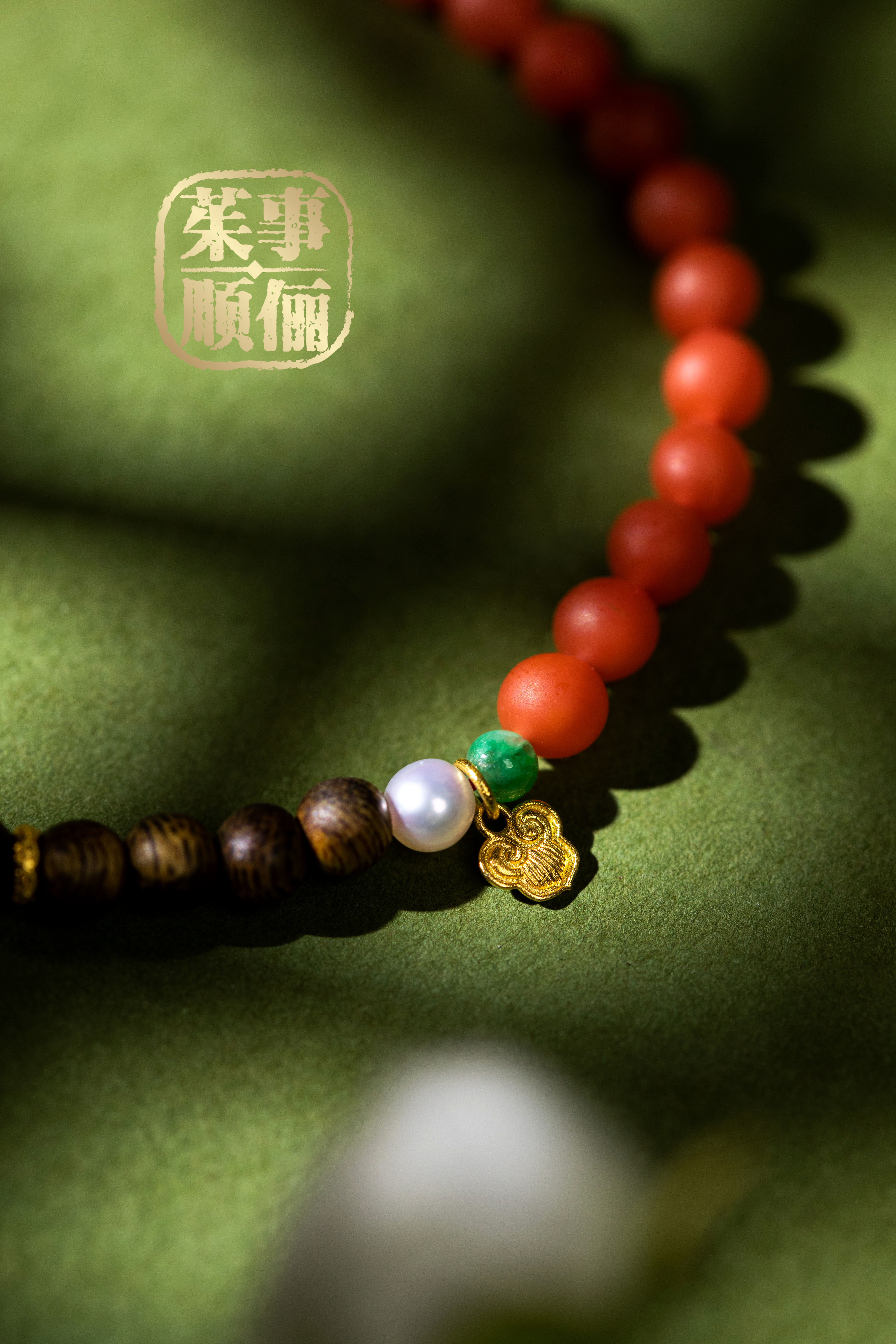 【茱事顺俪 18K黄金沉香南红双拼手链】