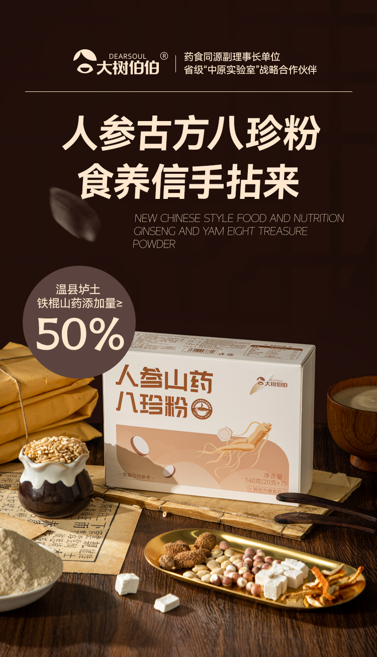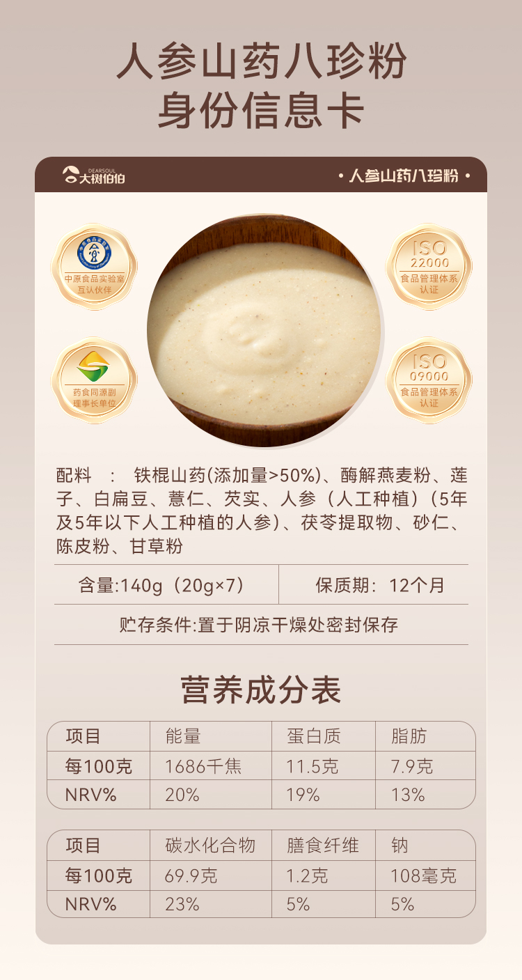 【第2盒半价】大树伯伯人参山药八珍粉 温县垆土铁棍山药制作140g/盒