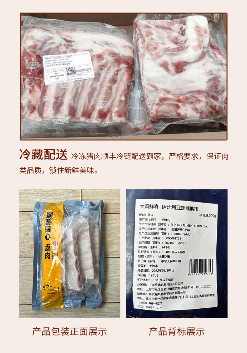 大黄鲜森 伊比利亚黑猪肋排 500g*3